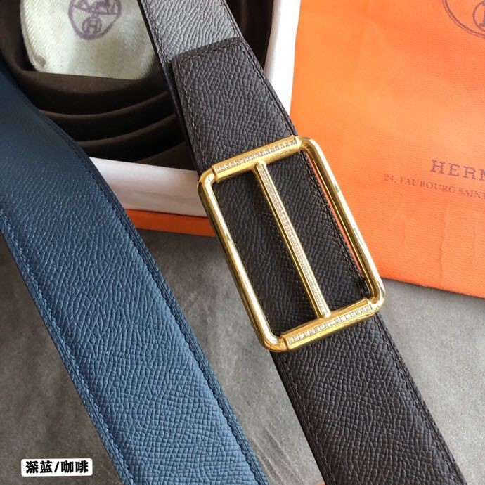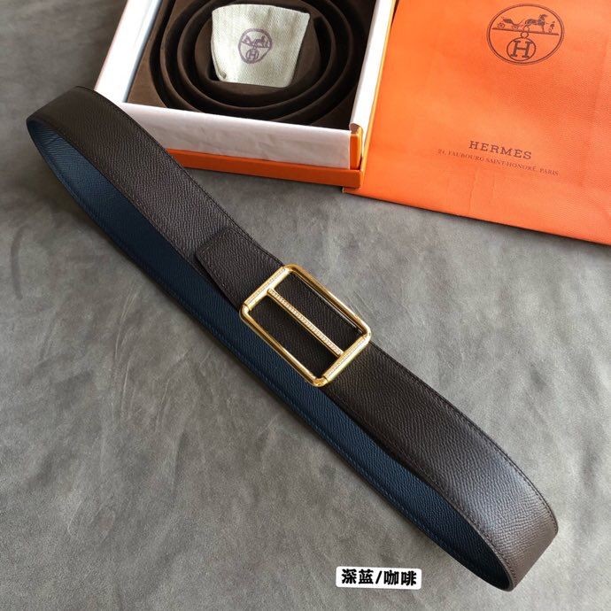 Hermes 38mm Reversible leather belt with stainless steel metal buckle