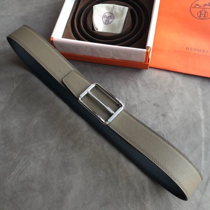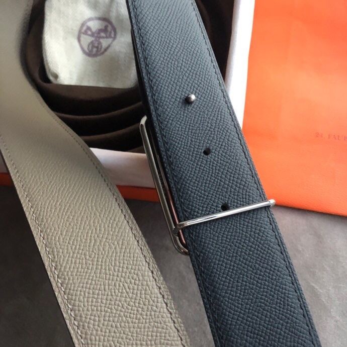 Hermes 38mm Reversible leather belt with stainless steel metal buckle