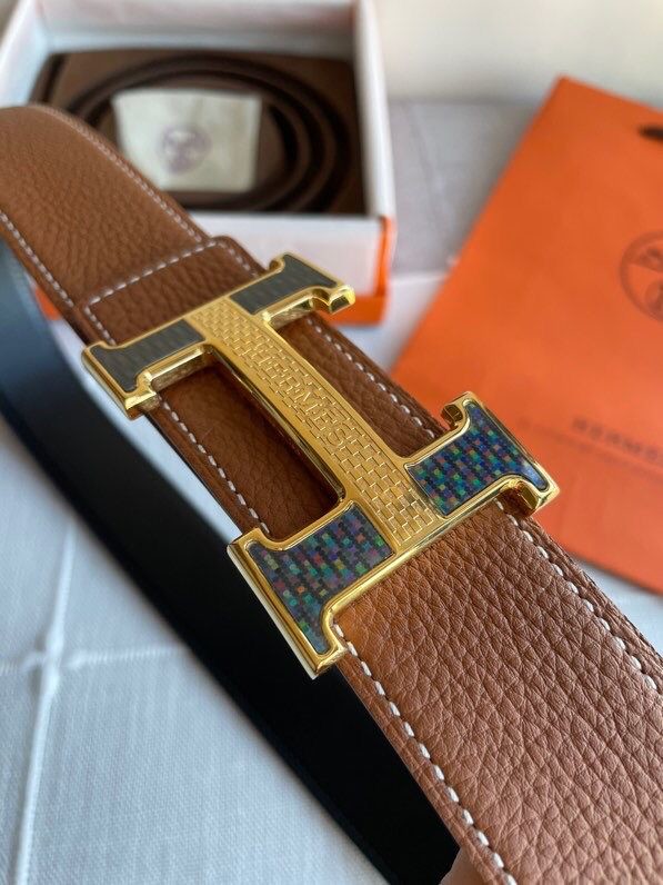 Hermes Stainless steel H pattern metal buckle & cowhide embossed crocodile pattern 38mm belt