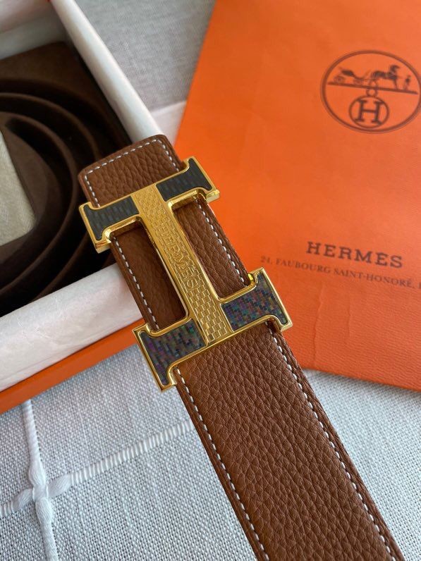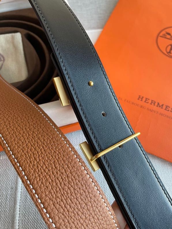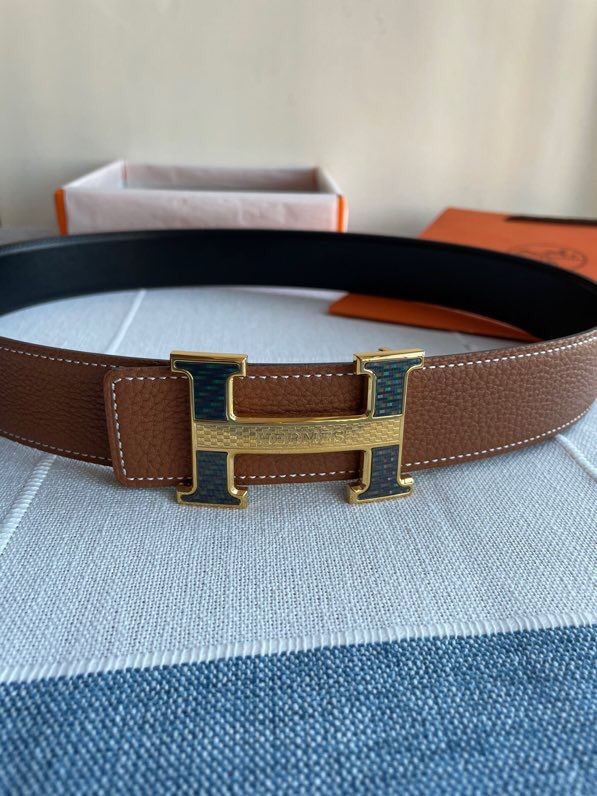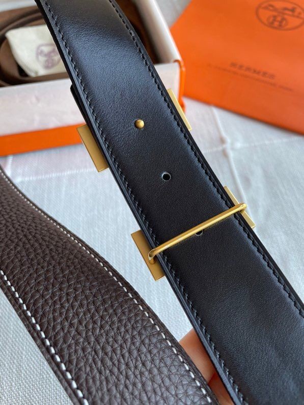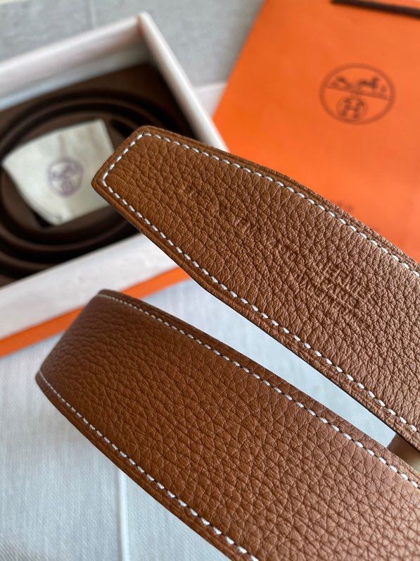 Hermes Stainless Steel Fiber Sheet Hanging Buckle Reversible Leather Men s 3.8cm Belt