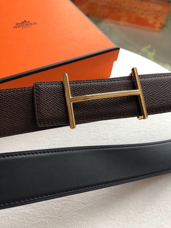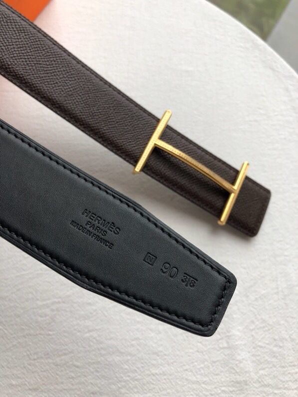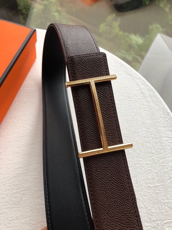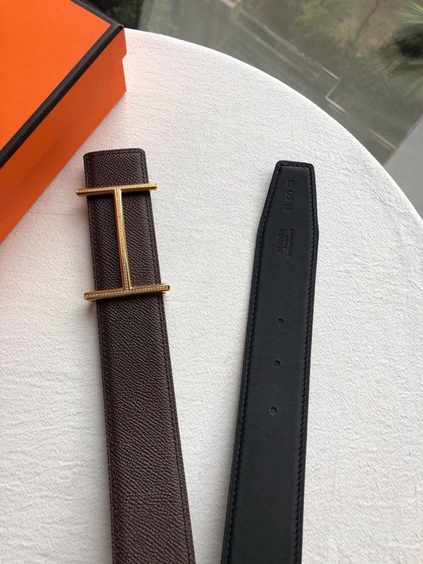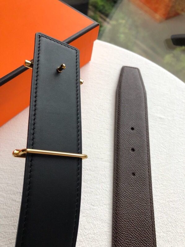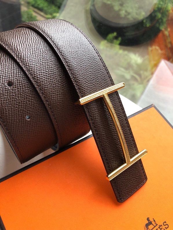 Hermes Stainless steel metal diamond buckle leather men s 3.8cm belt