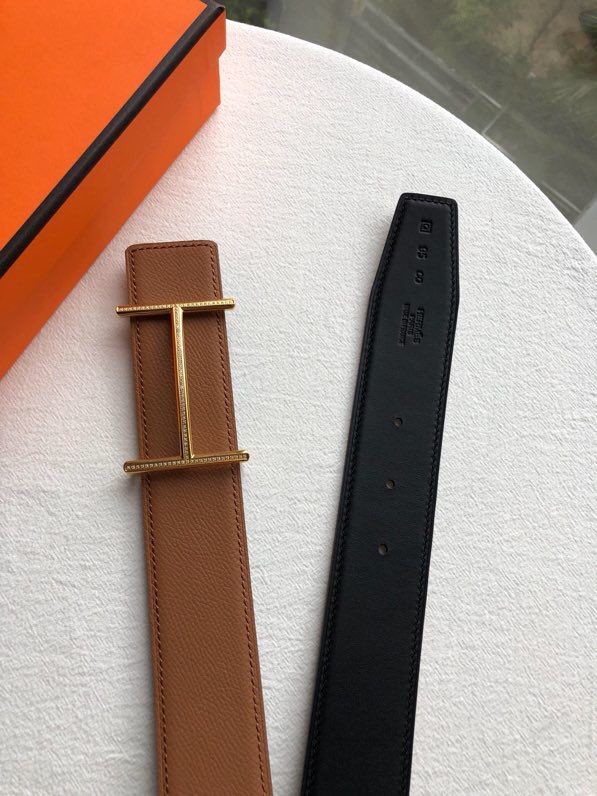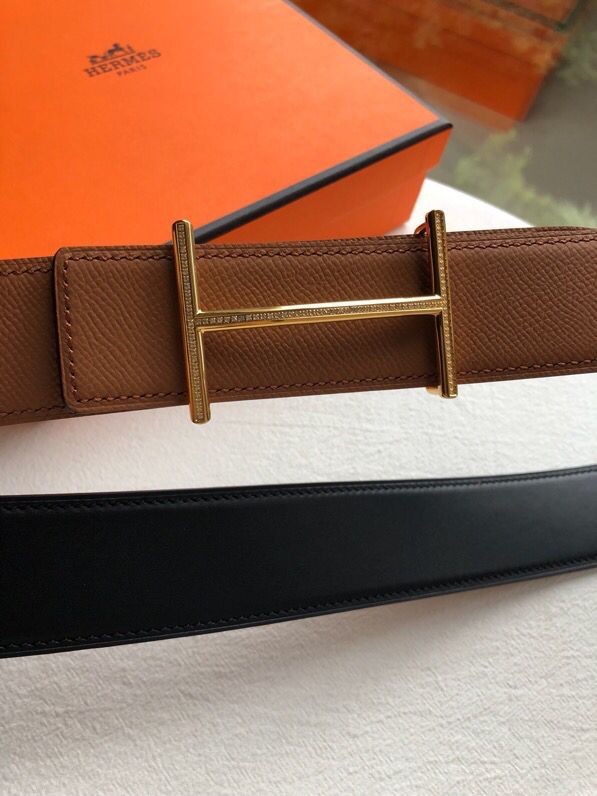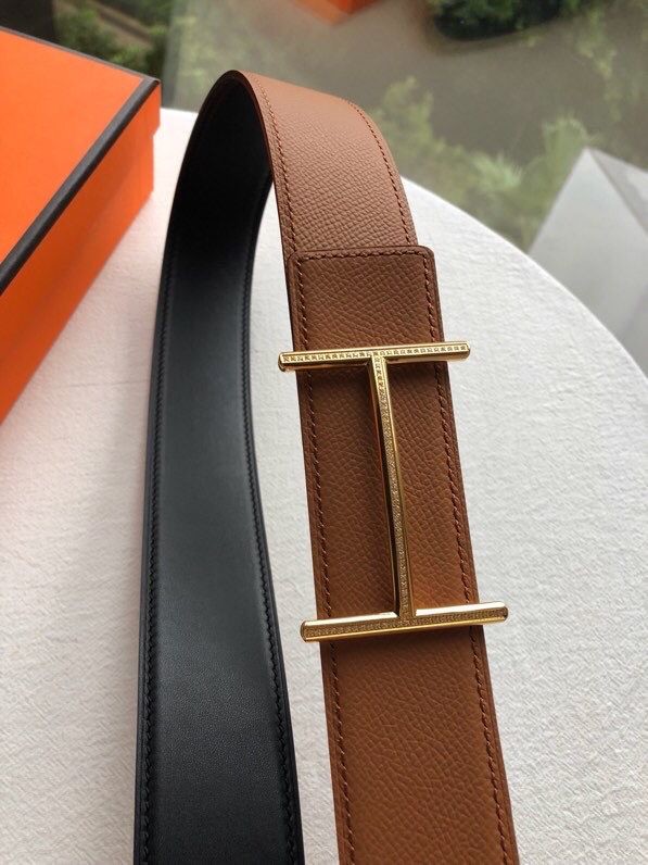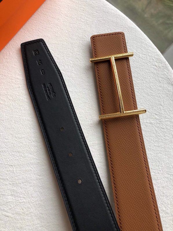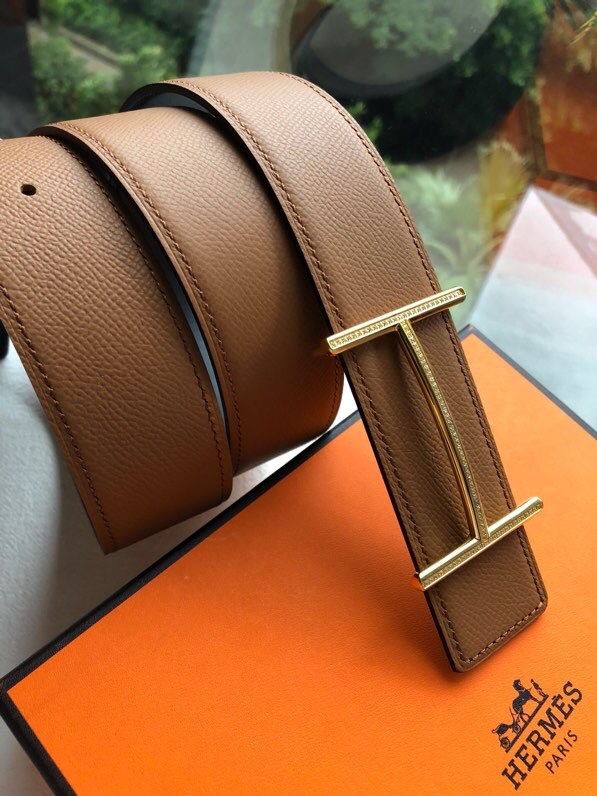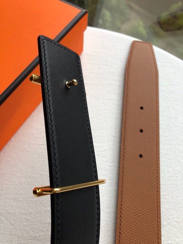 Hermes Stainless steel metal diamond buckle leather men s 3.8cm belt