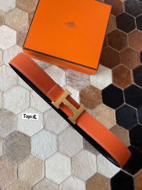 Hermes Togo leather stainless steel buckle 38mm men s belt