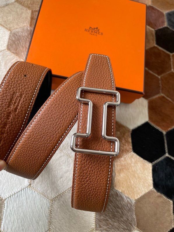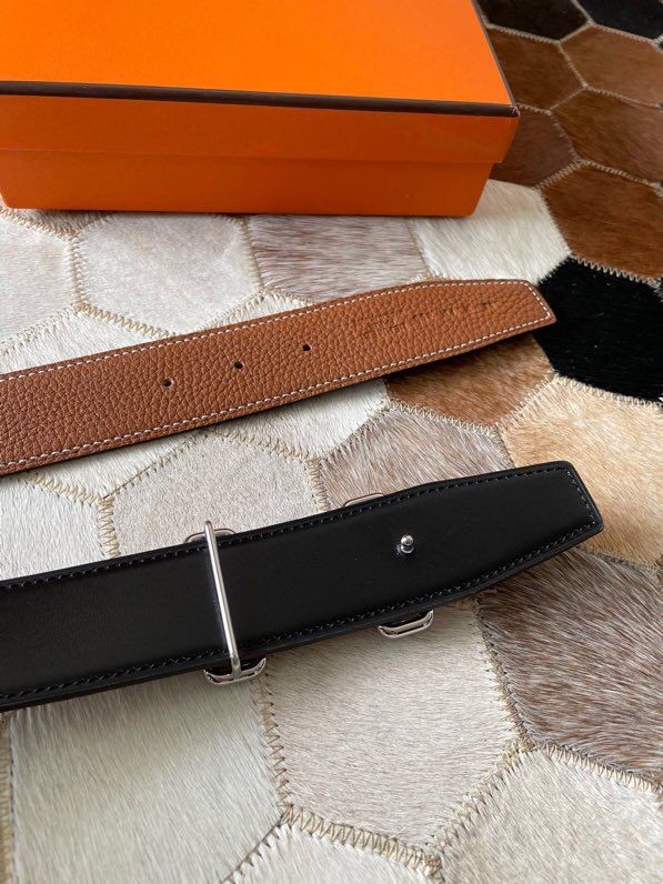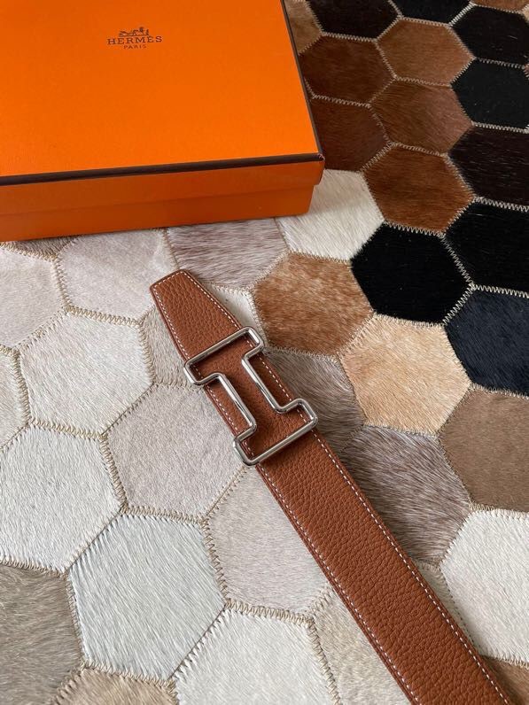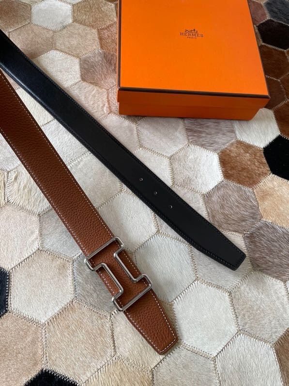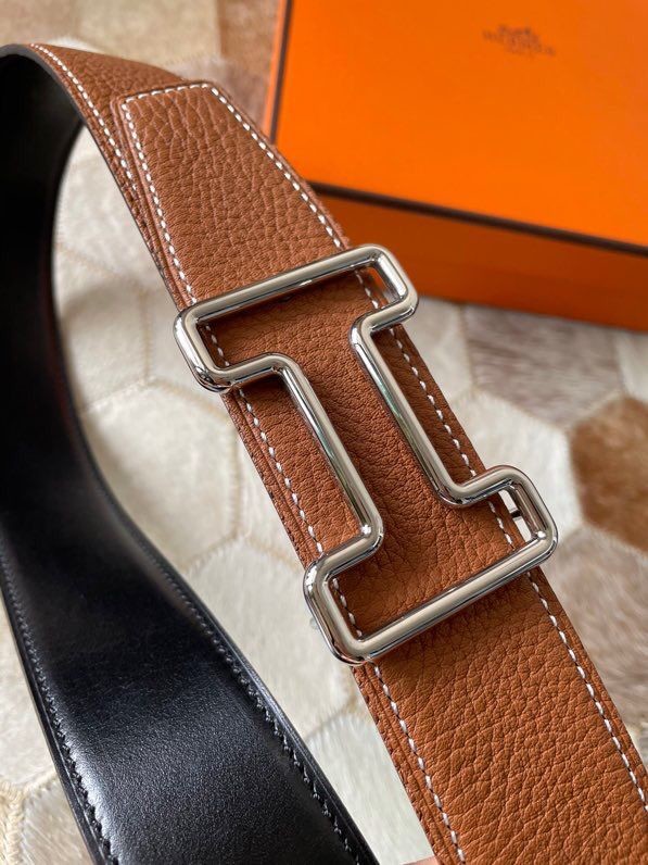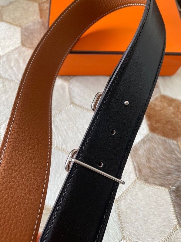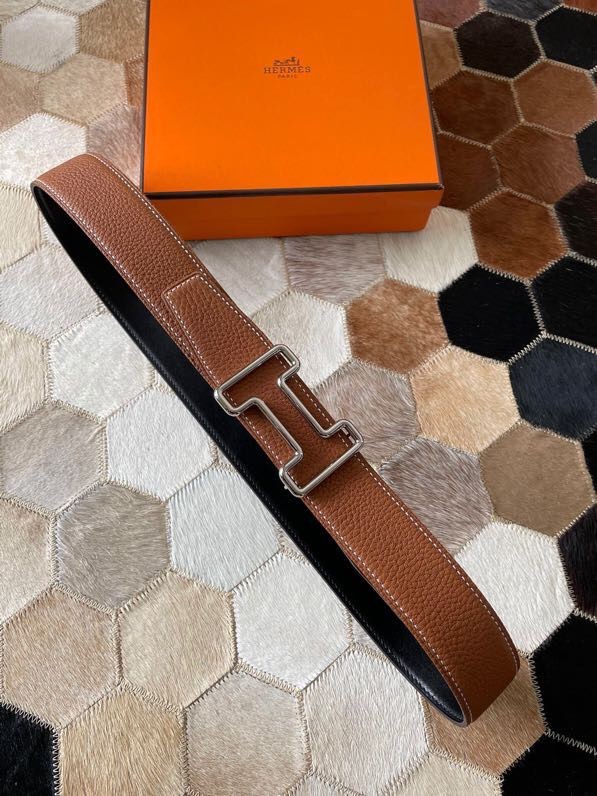 Hermes Tonight Metal Stainless Steel Belt Buckle & Reversible Leather Belt 38mm