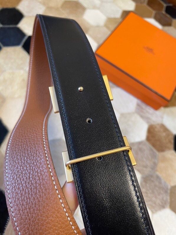 Hermes Stainless steel H pattern metal buckle & cowhide embossed crocodile pattern 38mm belt