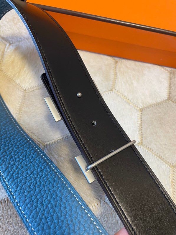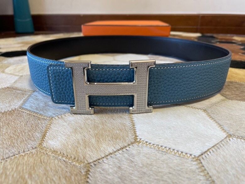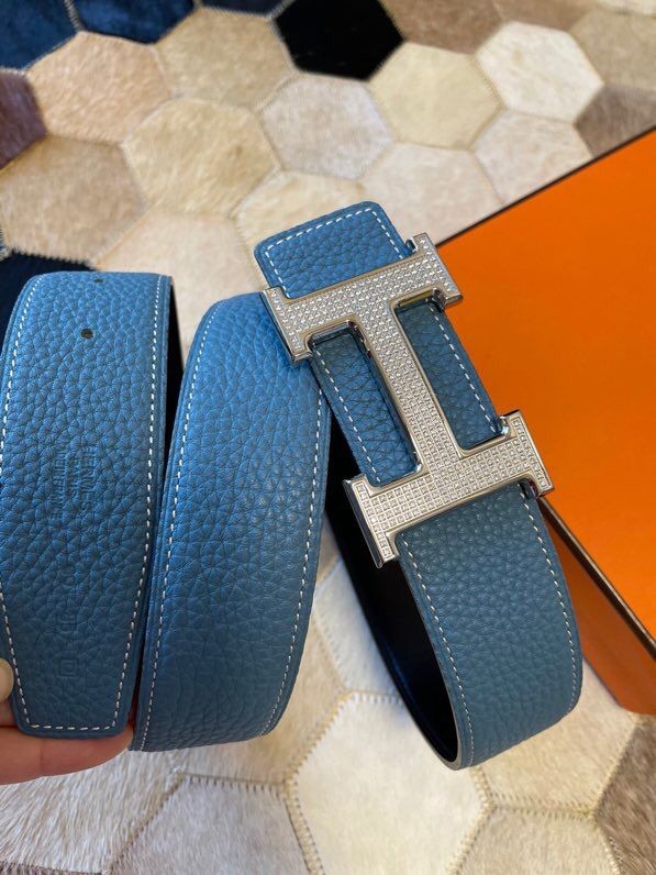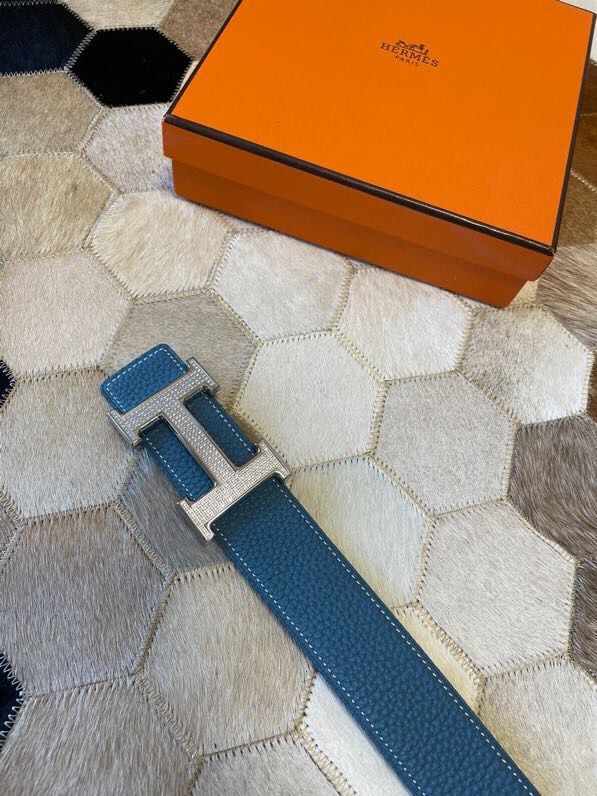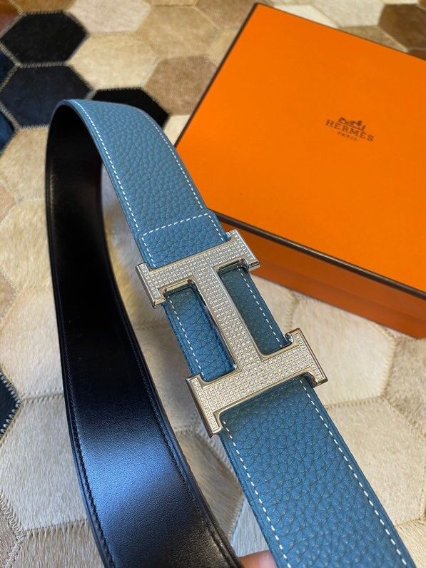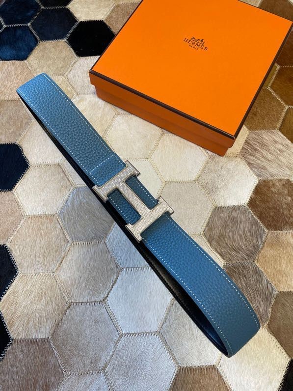 Hermes Stainless Steel Full Rhinestone Reversible Leather Men s 3.8cm Belt