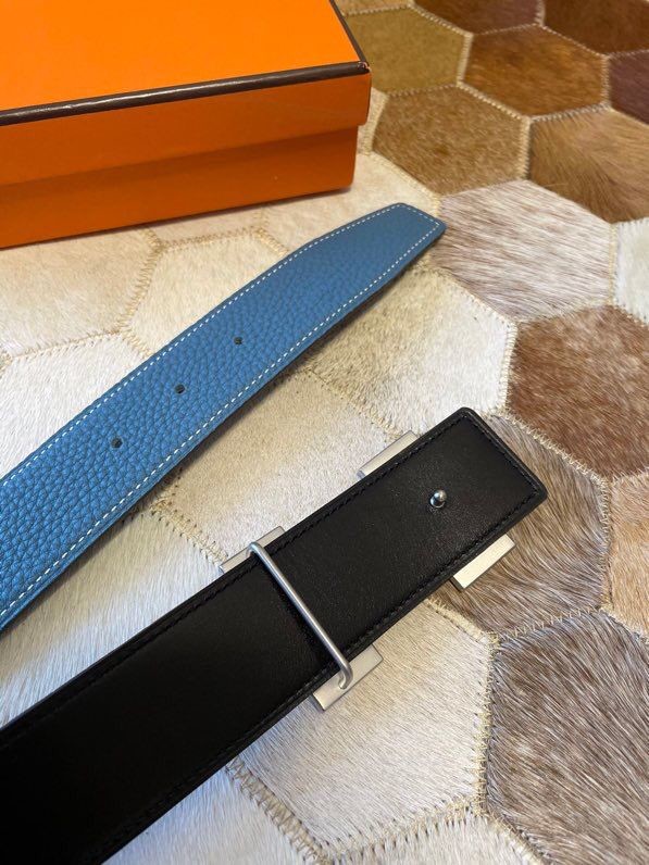 Hermes Stainless steel H pattern metal buckle & cowhide embossed crocodile pattern 38mm belt