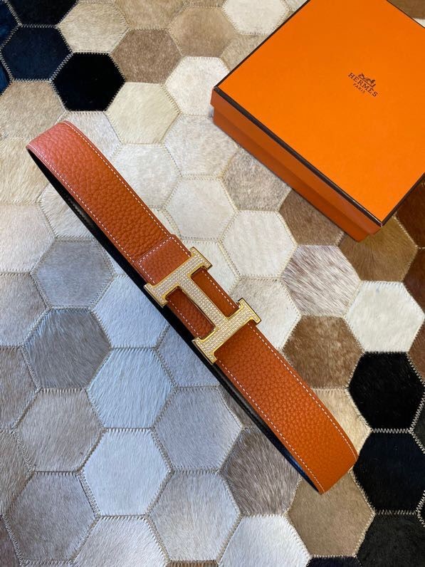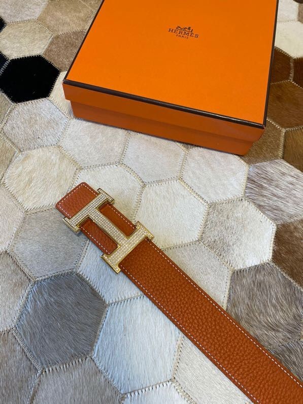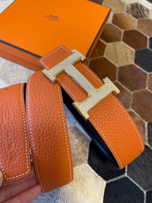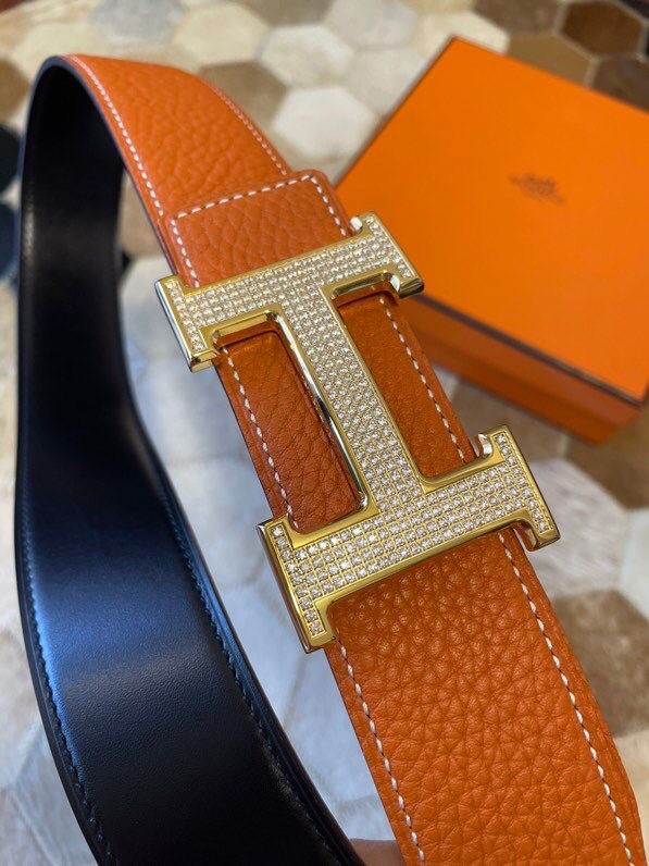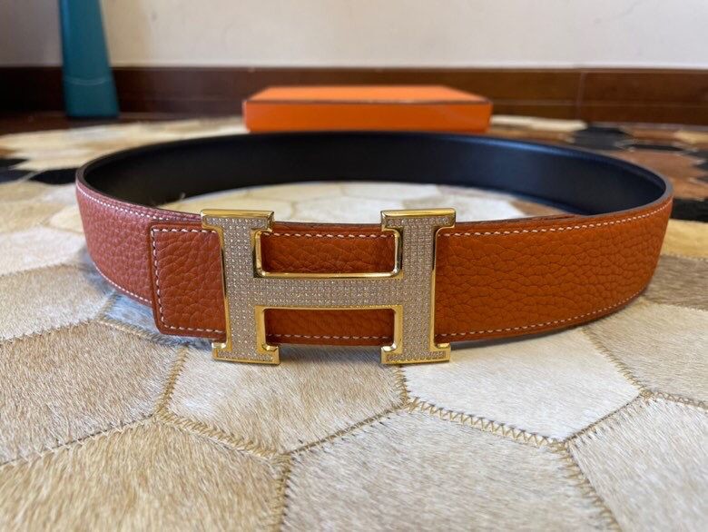 Hermes Stainless Steel Full Rhinestone Reversible Leather Men s 3.8cm Belt