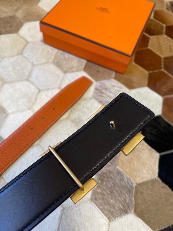 Hermes Stainless steel H pattern metal buckle & cowhide embossed crocodile pattern 38mm belt