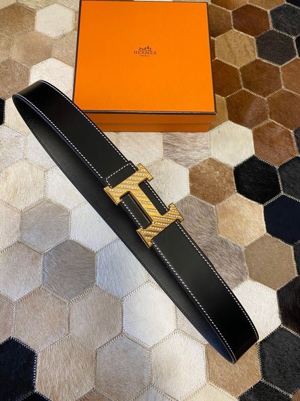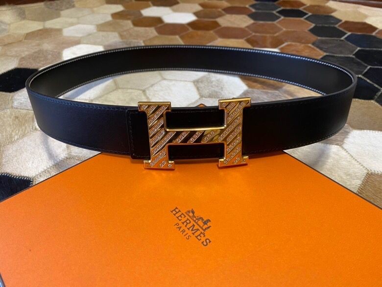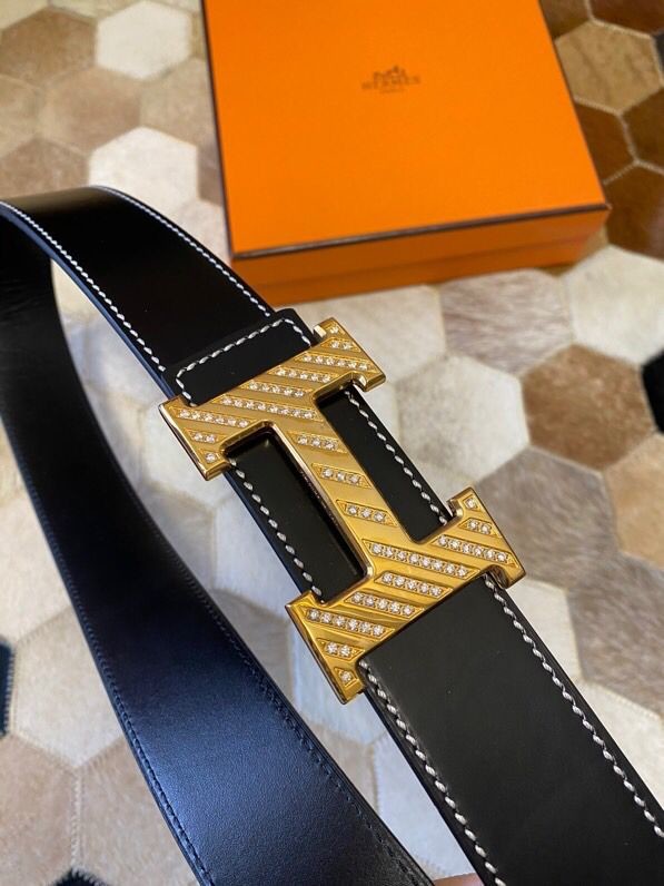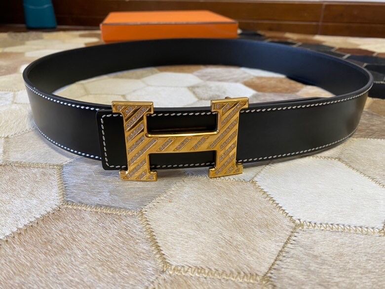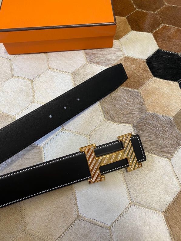 Hermes Stainless steel material metal buckle leather Reversible men s 3.8cm belt