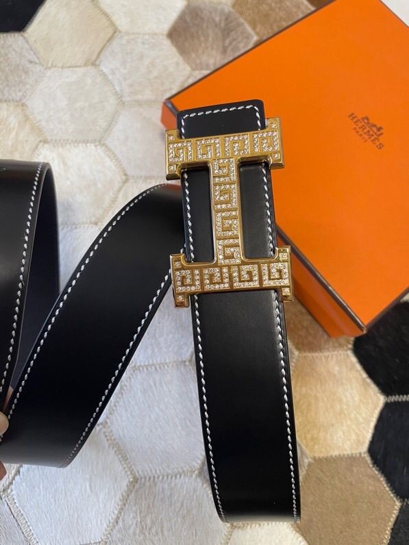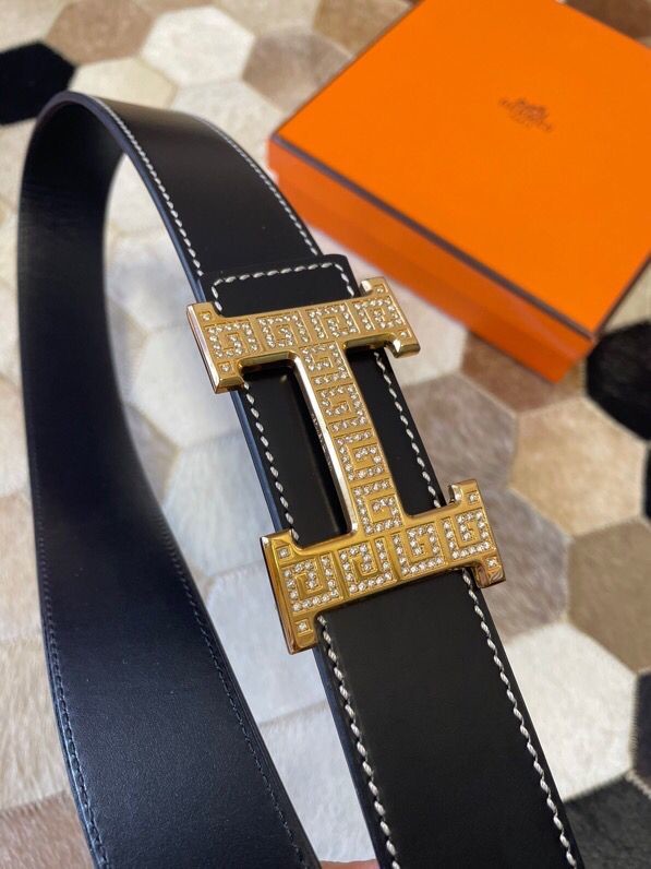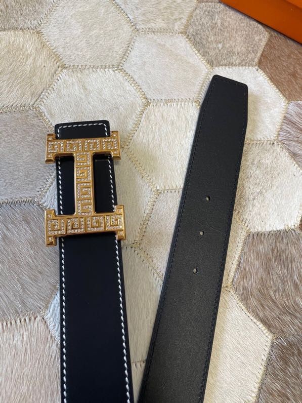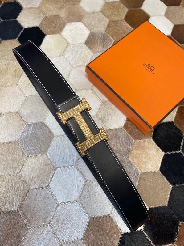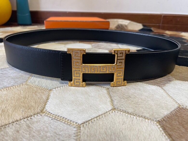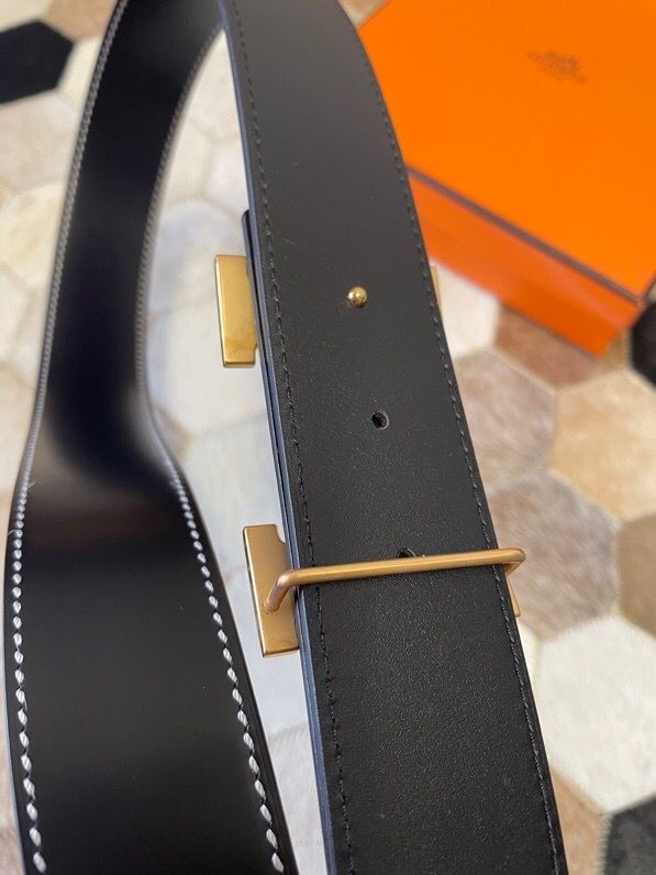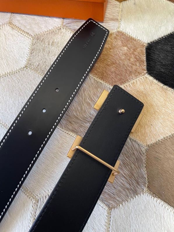 Hermes Stainless steel metal buckle leather men s 3.8cm belt