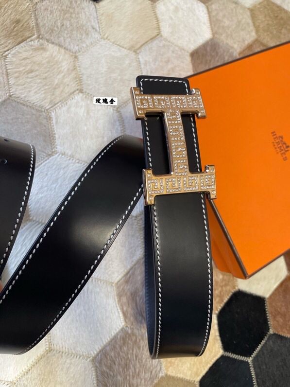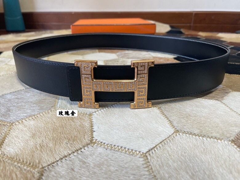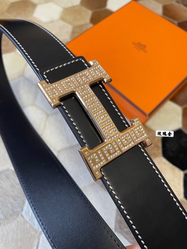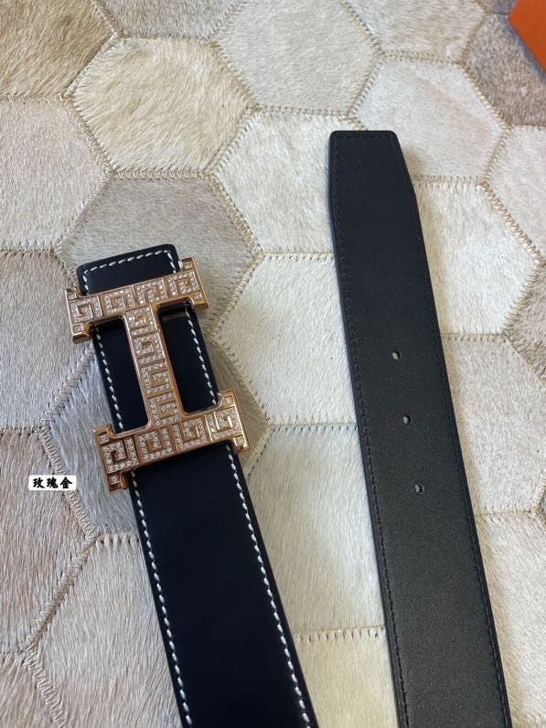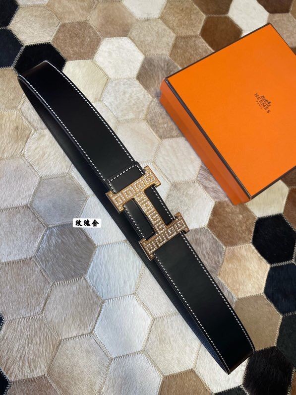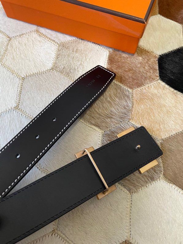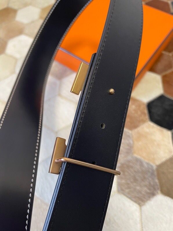 Hermes Stainless steel metal buckle leather men s 3.8cm belt