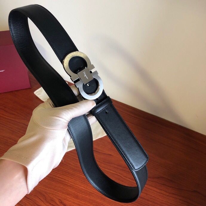 Ferragamo Men s Cowhide Black Reversible Usable Classic Timeless Buckle Belt 3.5cm