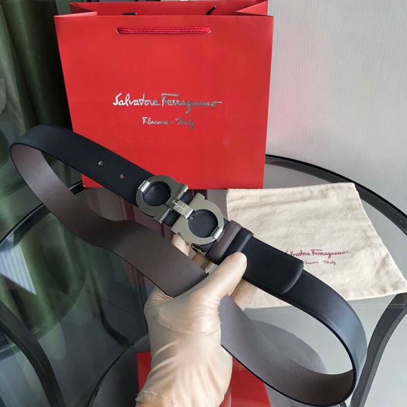 Ferragamo Stainless Steel Buckle 3.5cm Men s Cowhide Black/Brown Reversible Usable Belt