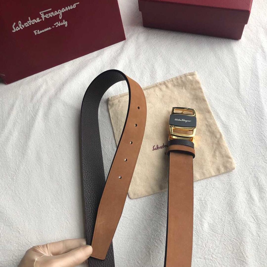 Ferragamo Men s 3.5cm exquisite horseshoe metal buckle men s belt