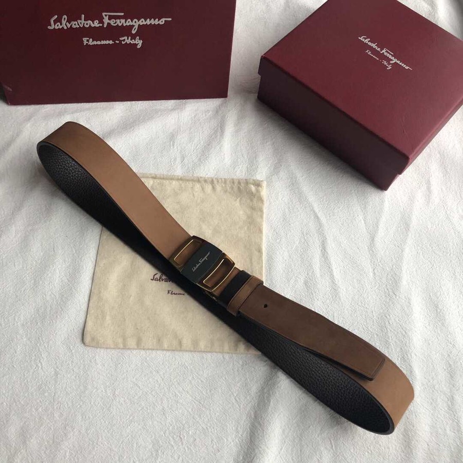 Ferragamo Men s 3.5cm Stainless Steel Suede Color Change Leather Belt with Metal Buckle