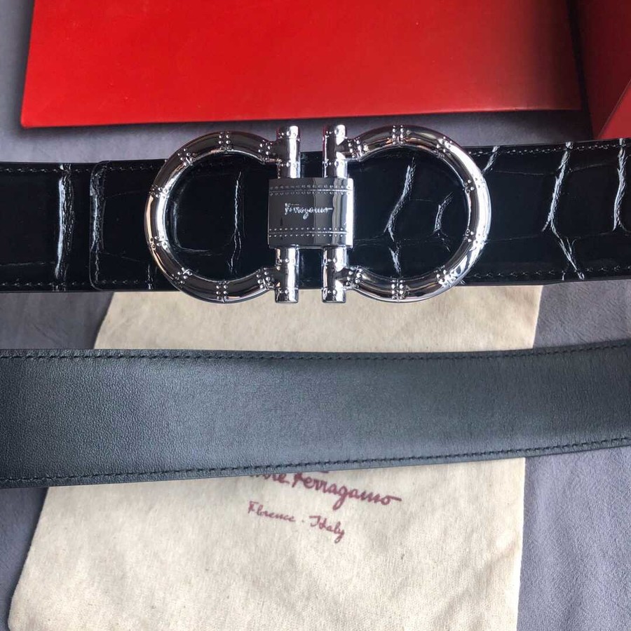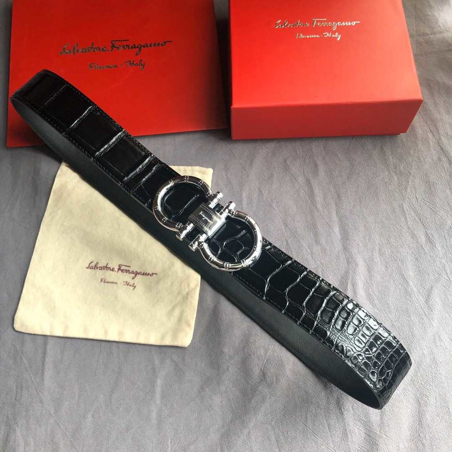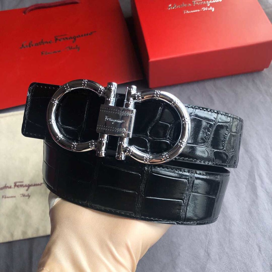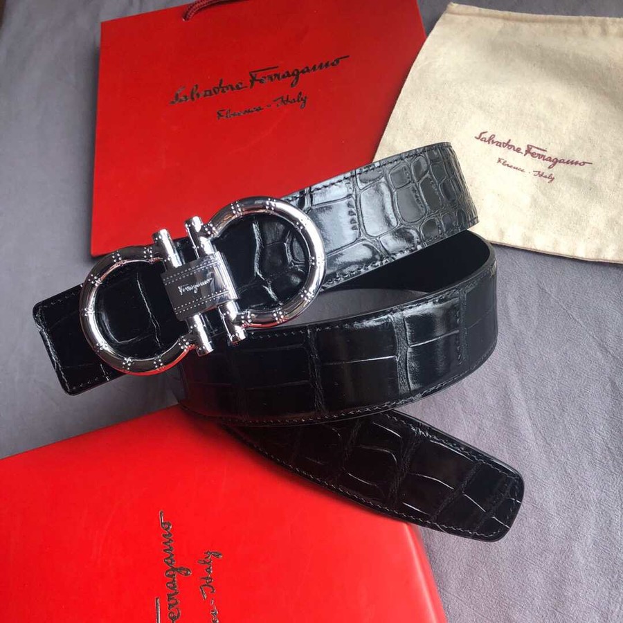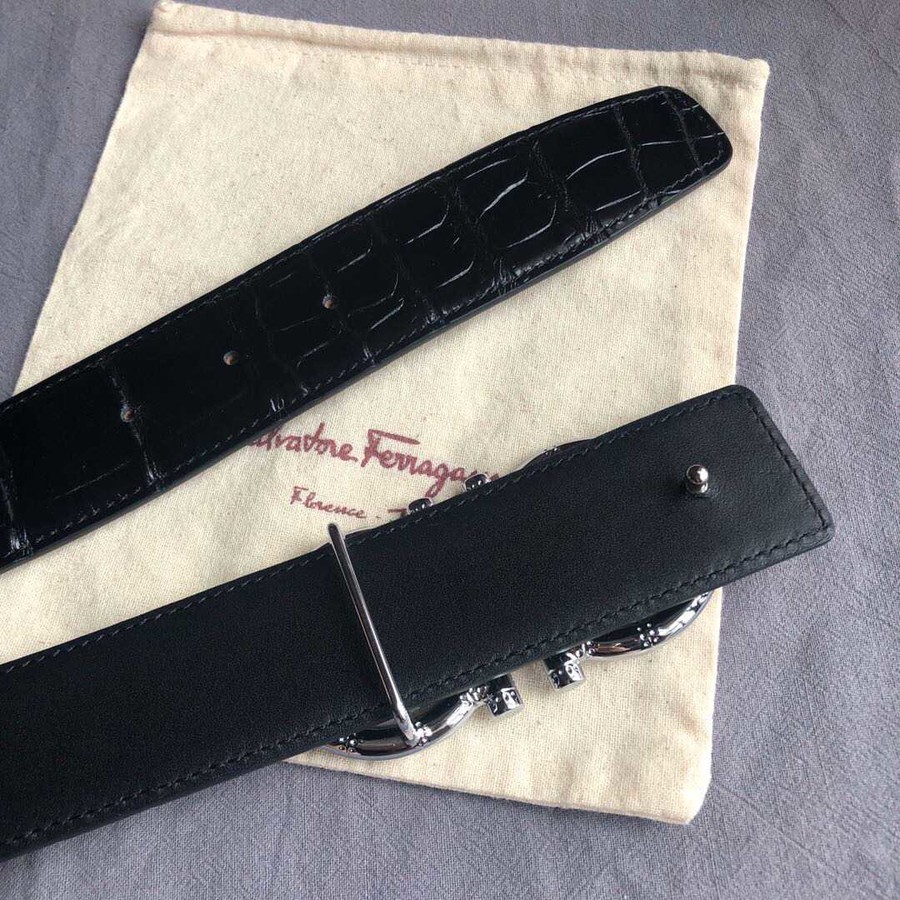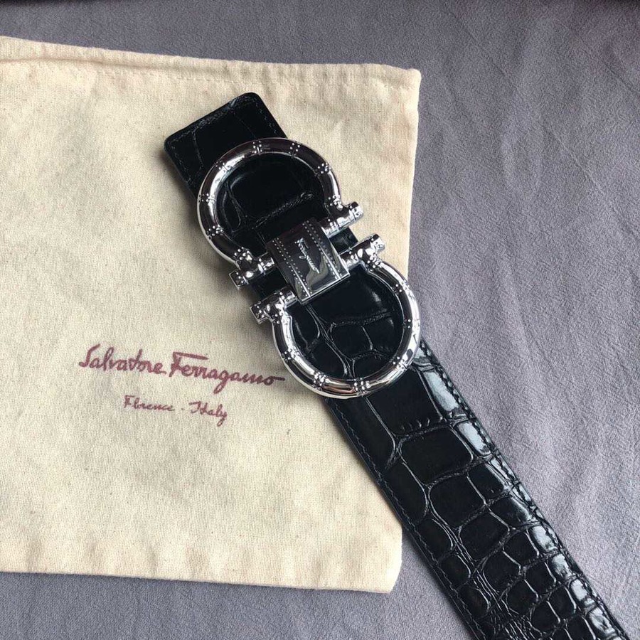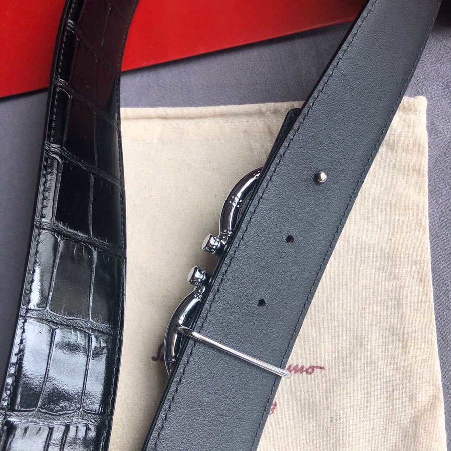Ferragamo 3.8cm buckle with cowhide crocodile pattern belt
