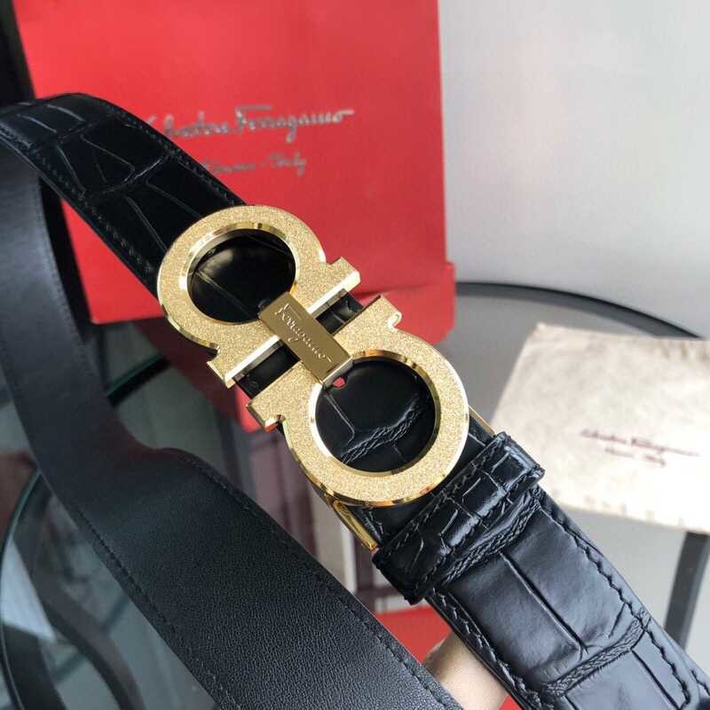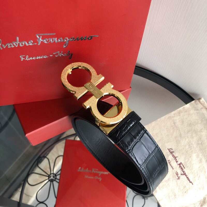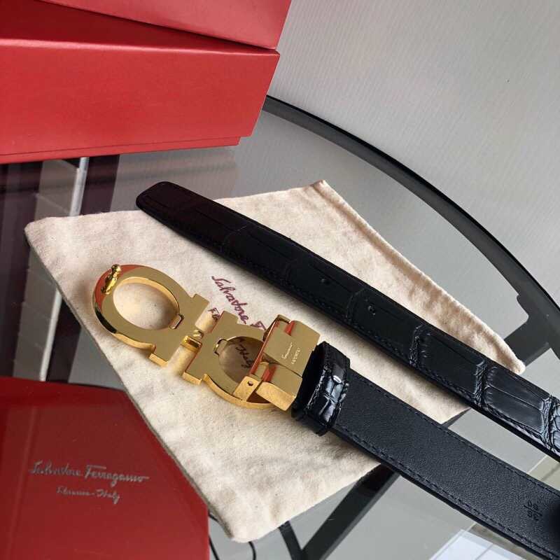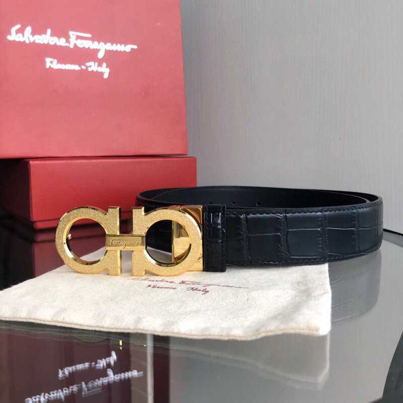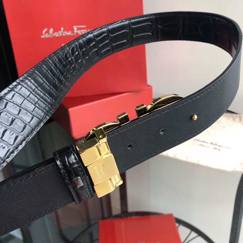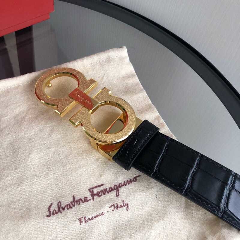 Ferragamo 3.5cm stainless steel metal buckle with cowhide crocodile pattern belt