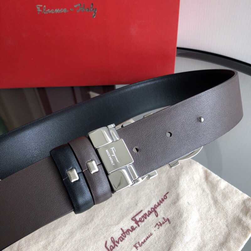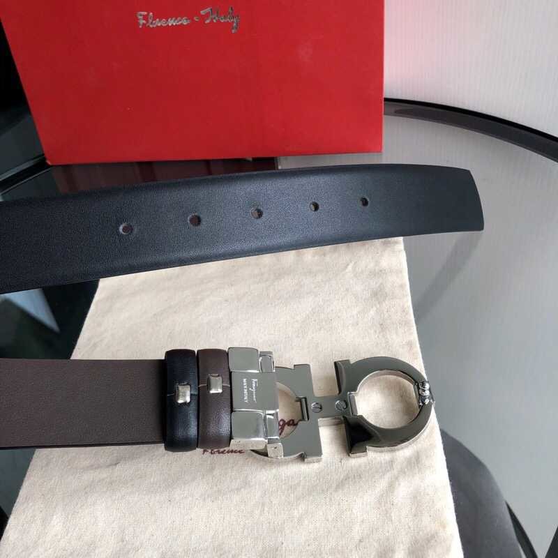 Ferragamo Stainless Steel Buckle 3.5cm Men s Cowhide Black/Brown Reversible Usable Belt