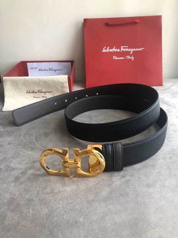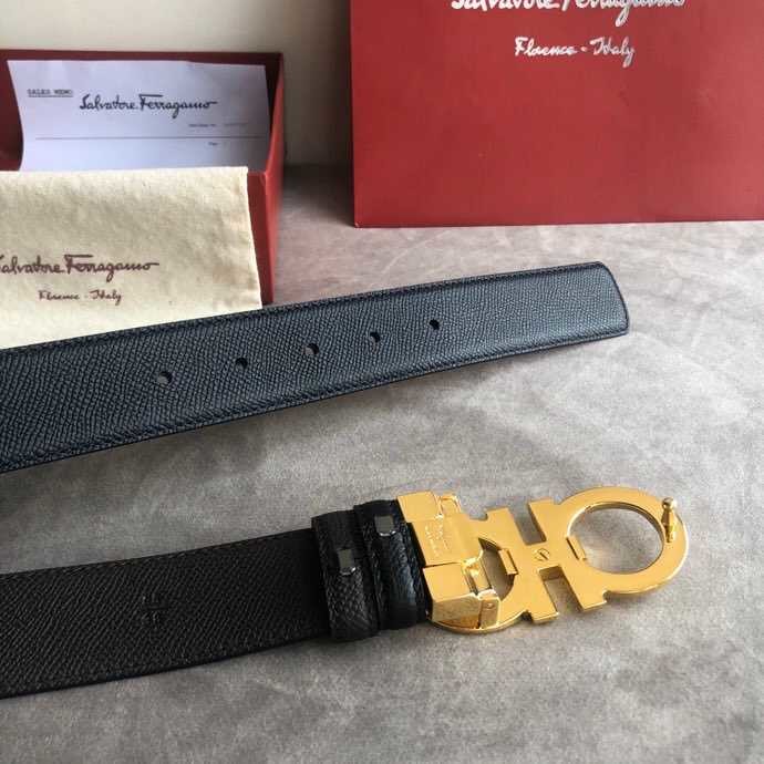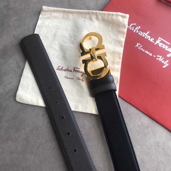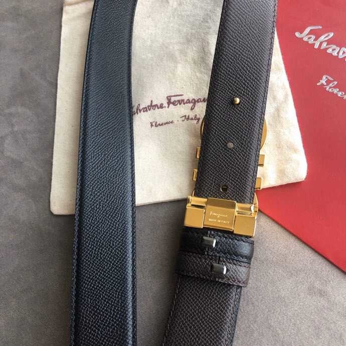 Ferragamo Men s 3.5cm exquisite diamond-shaped faceted metal buckle cowhide cross pattern belt