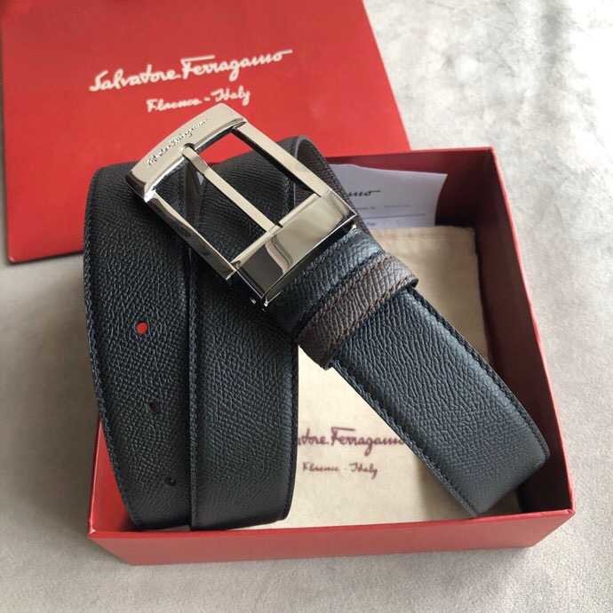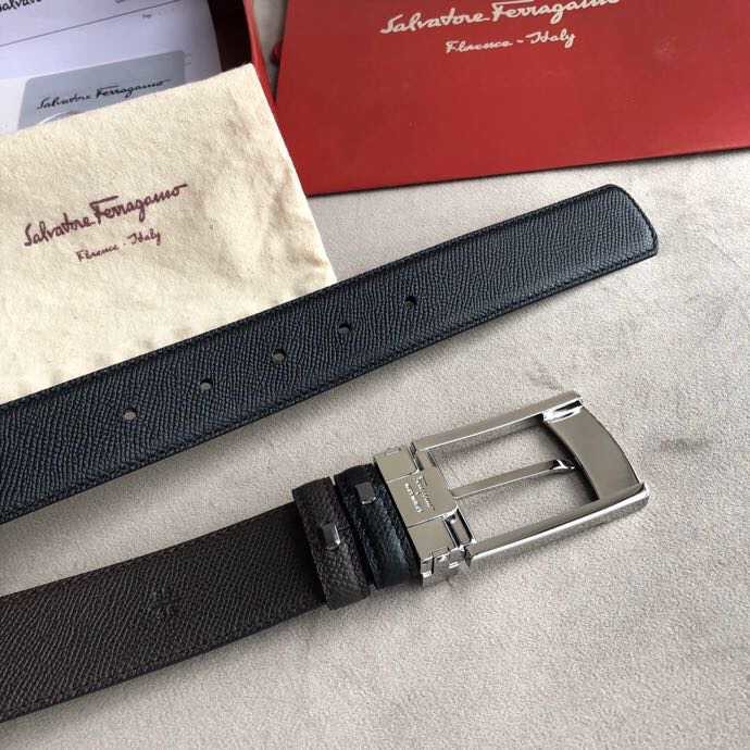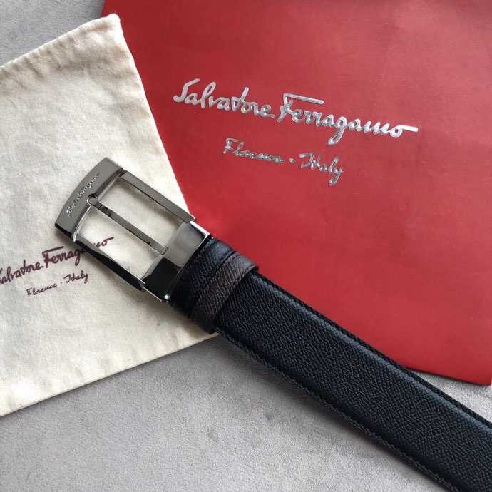 Ferragamo Men s 3.5cm buckle leather cross pattern belt