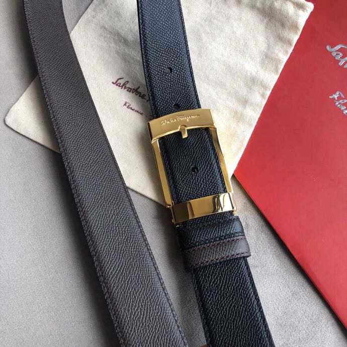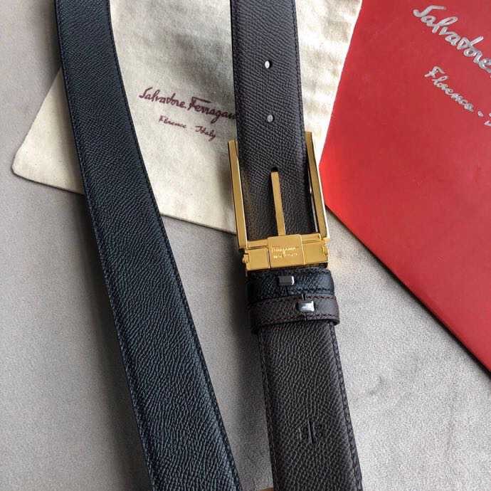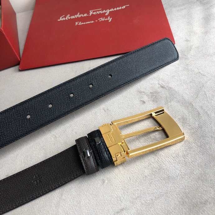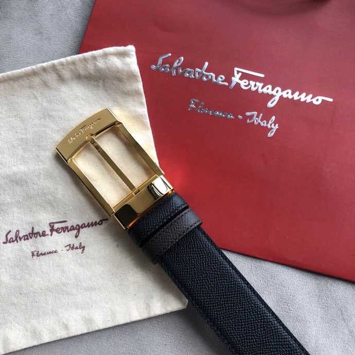 Ferragamo Men s 3.5cm buckle leather cross pattern belt