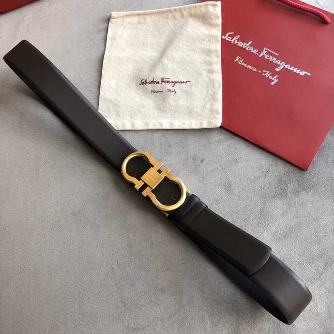 Ferragamo Men s 3.5cm Nappa Leather Belt with Exquisite Metal Buckle