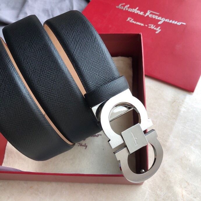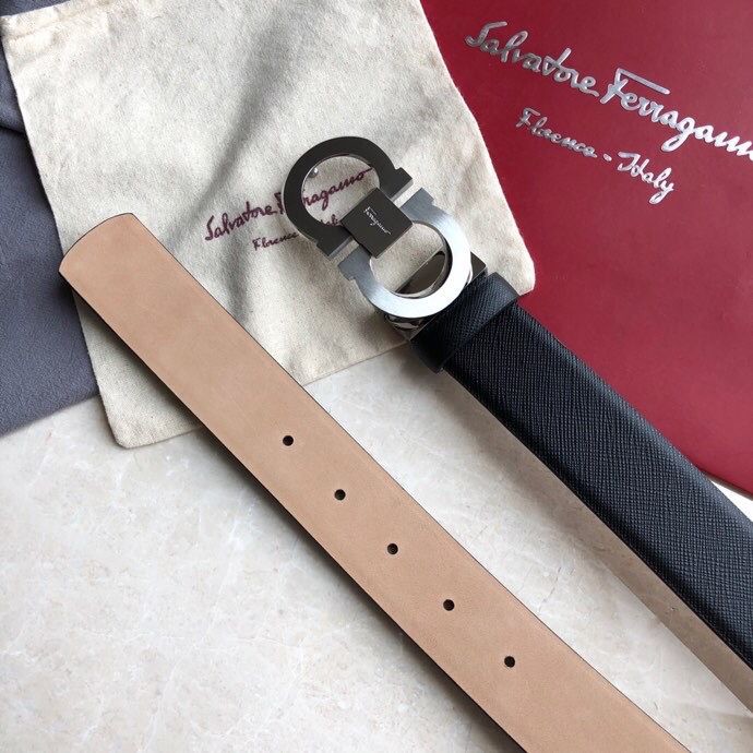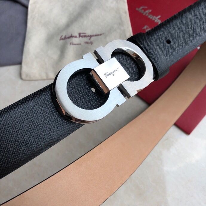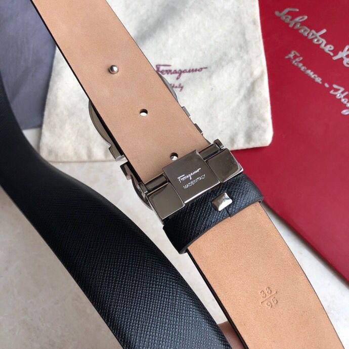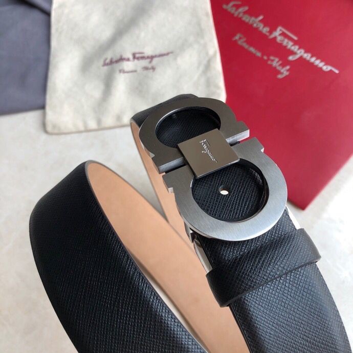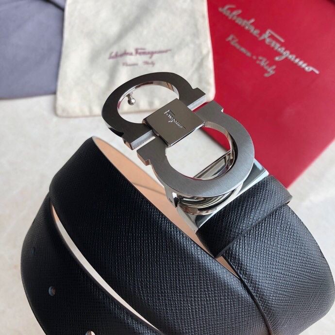 Ferragamo Men s 3.5cm Stainless Steel Beveled Metal Buckle Cowhide Cross Pattern Belt
