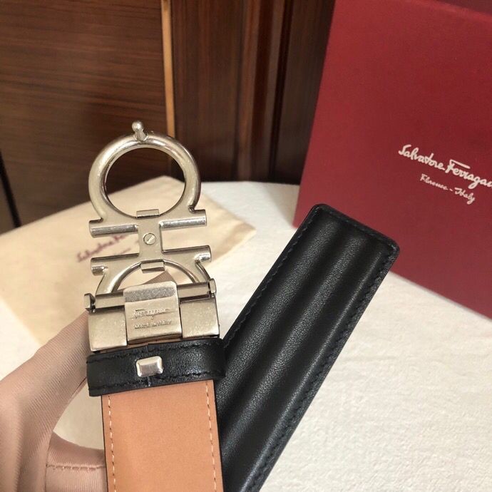 Ferragamo Men s 3.5cm vintage style buckle cowhide wave pattern belt