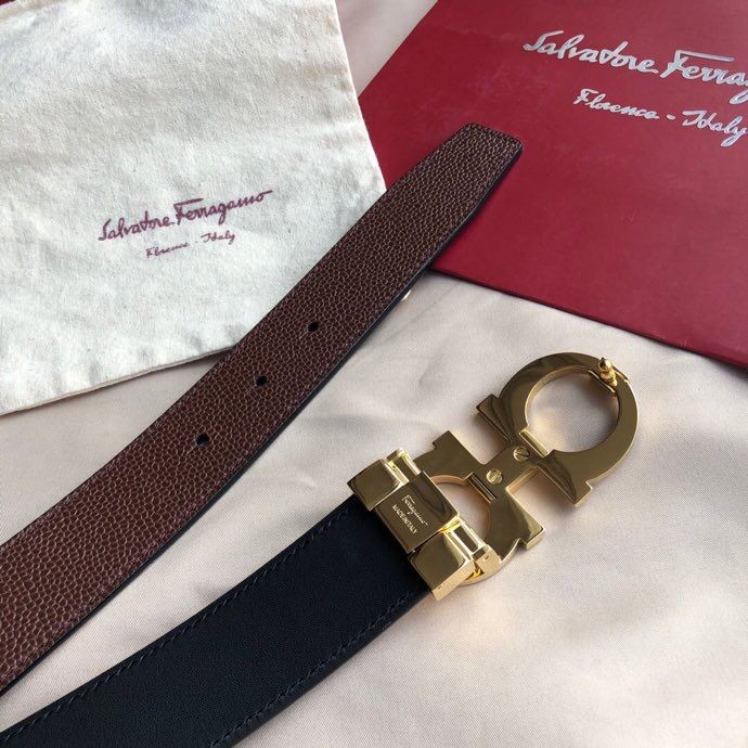 Ferragamo Men s 3.5cm exquisite horseshoe metal buckle men s belt