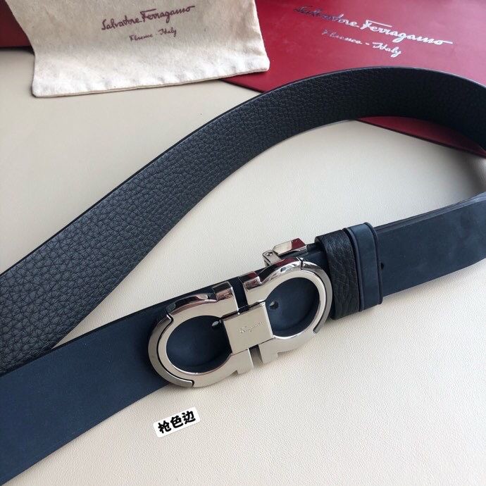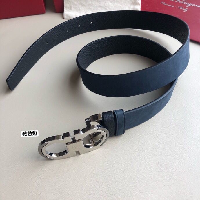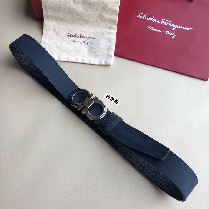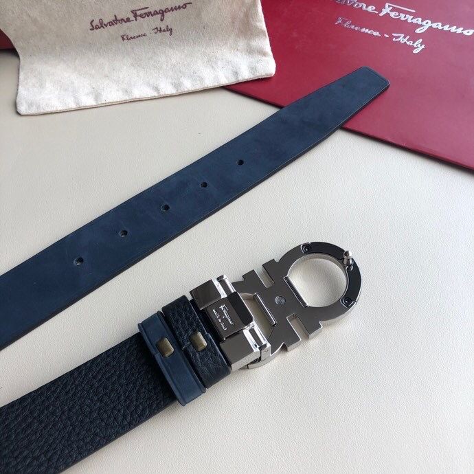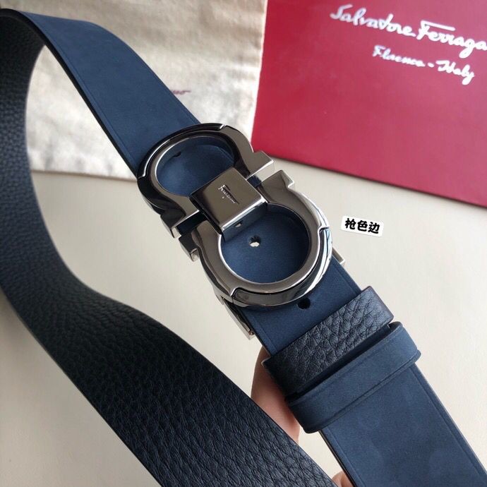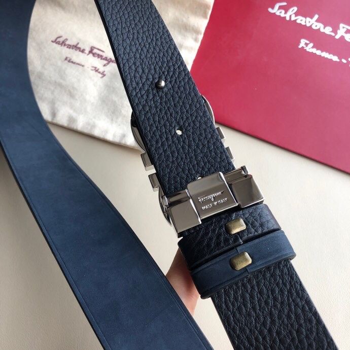 Ferragamo 3.5cm Gancio Metal Buckle Leather Suede Belt