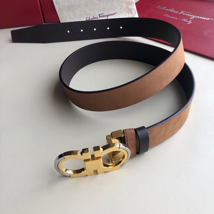 Ferragamo Men s 3.5cm exquisite horseshoe metal buckle men s belt