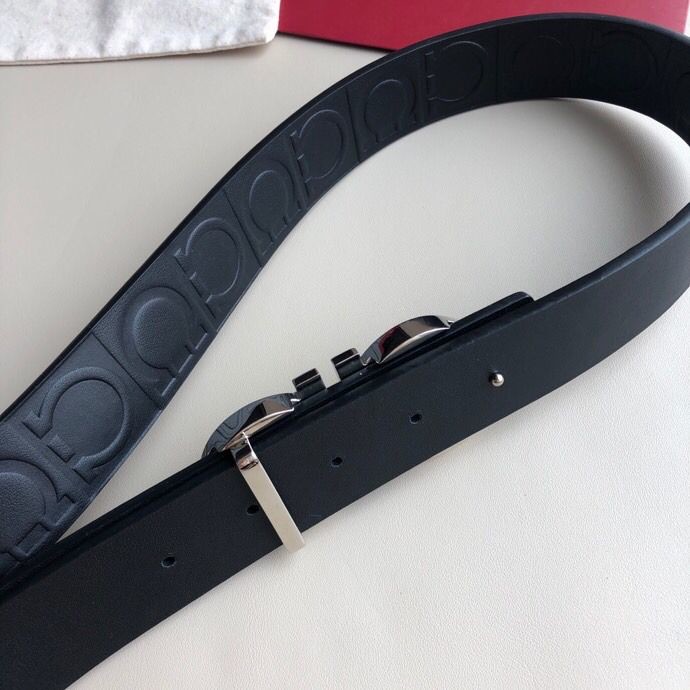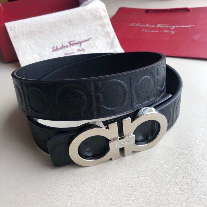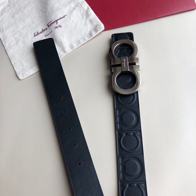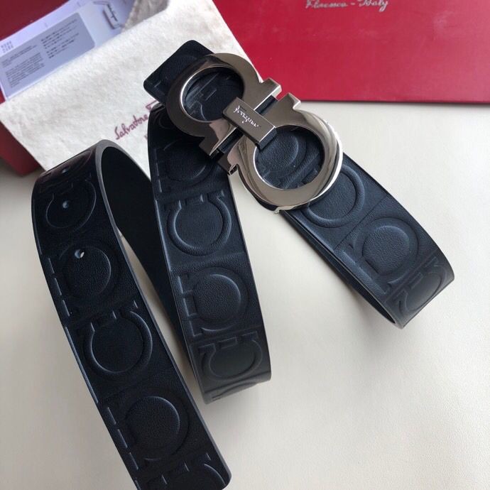 Ferragamo Men s classic leather embossed exquisite hanging buckle belt