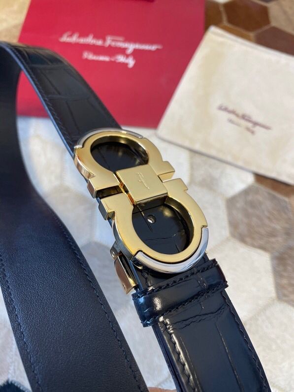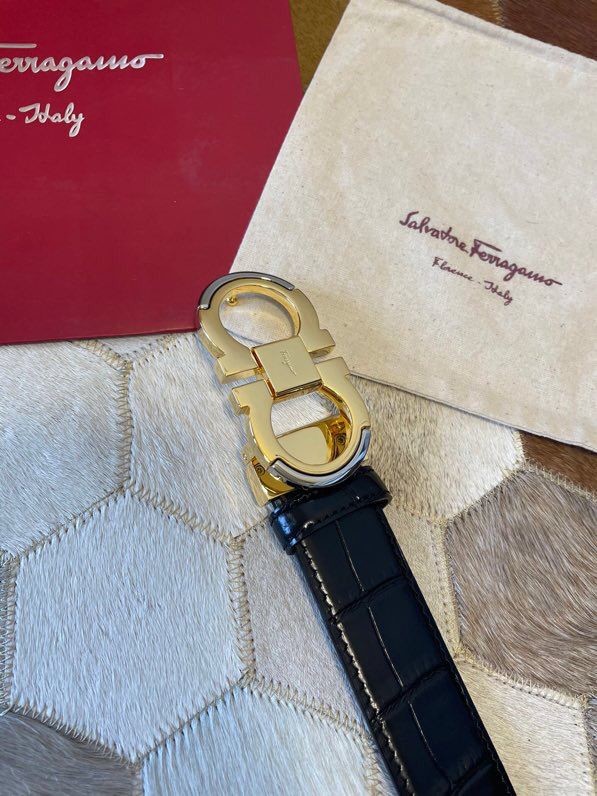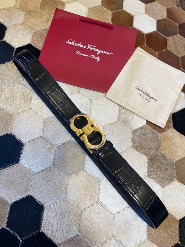 Ferragamo Men s 3.5cm exquisite horseshoe metal buckle men s belt