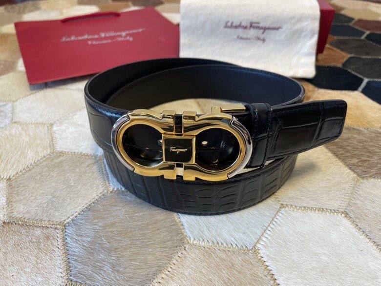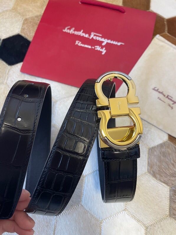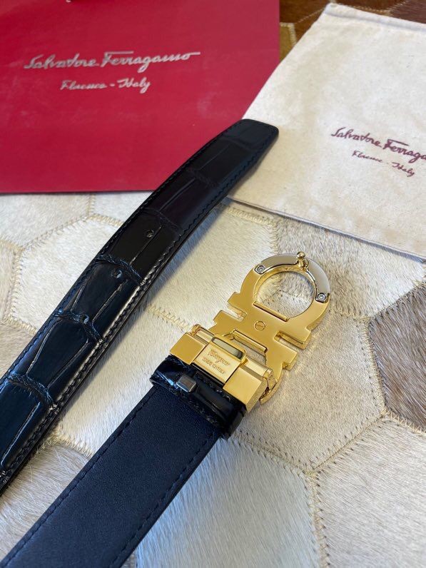 Ferragamo 3.5cm Gancio metal buckle with cowhide crocodile pattern belt