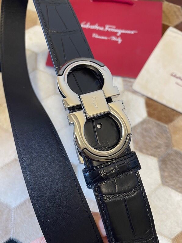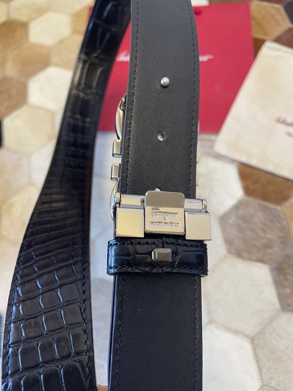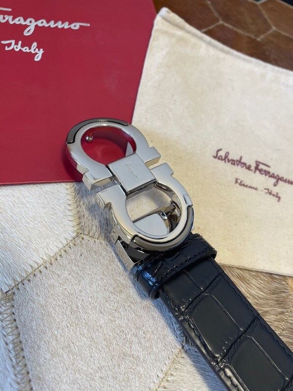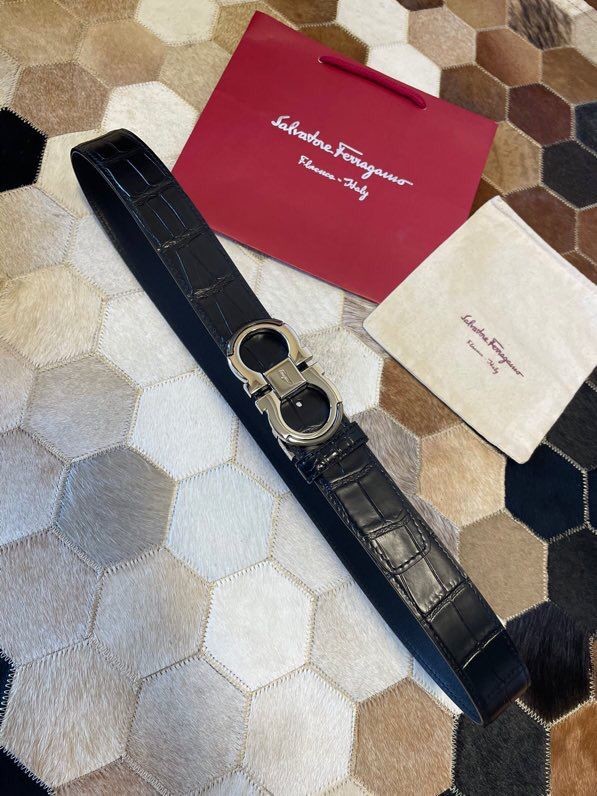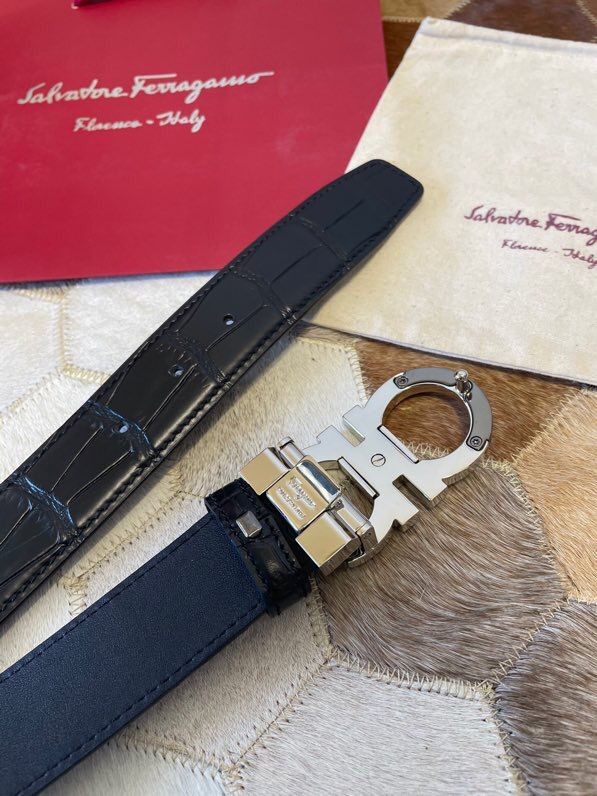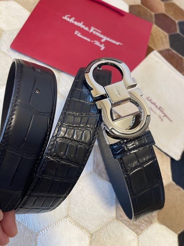 Ferragamo 3.5cm Gancio metal buckle with cowhide crocodile pattern belt