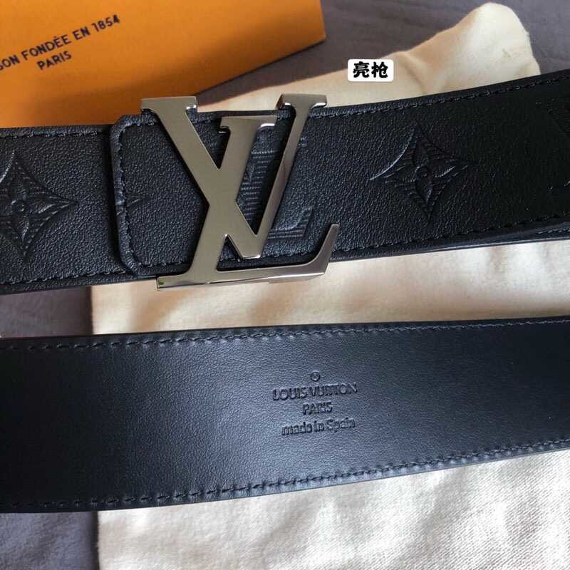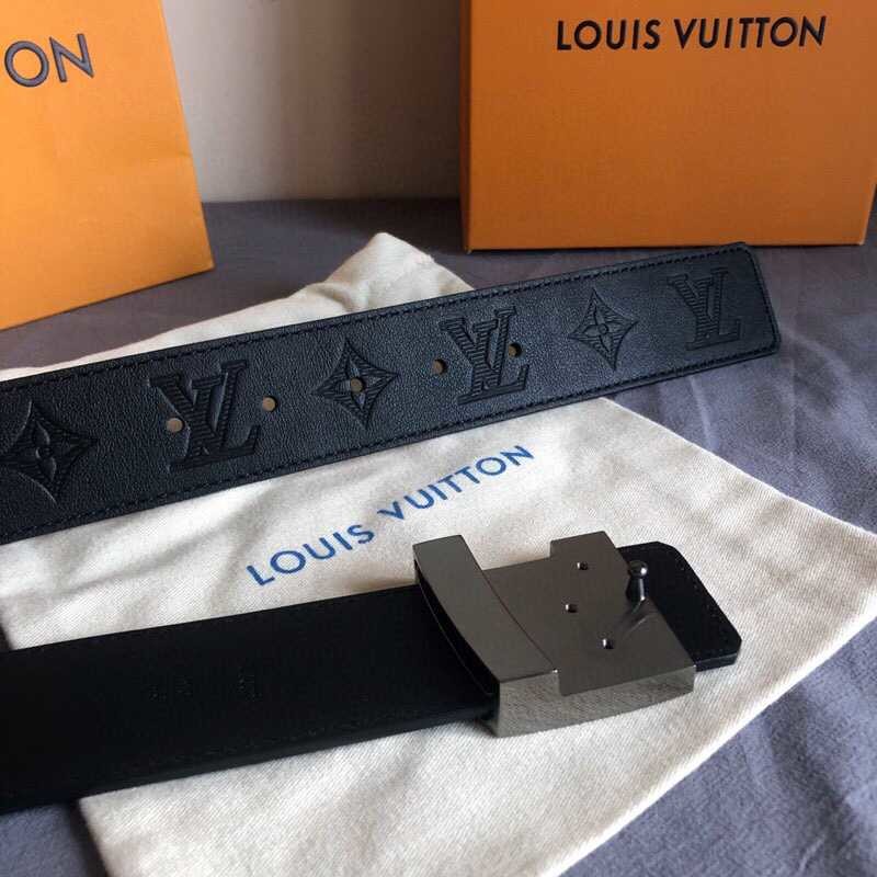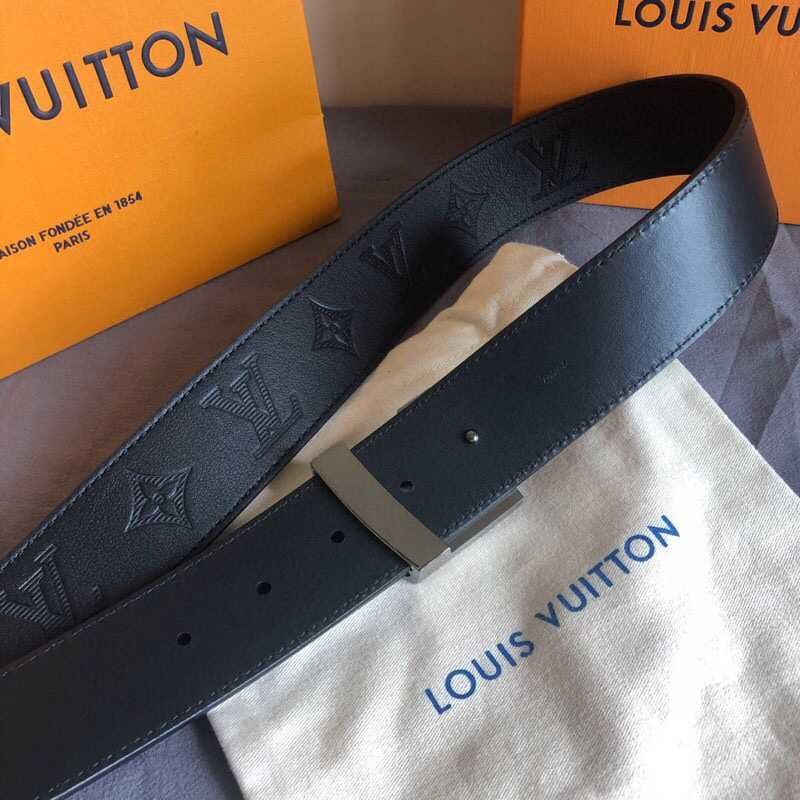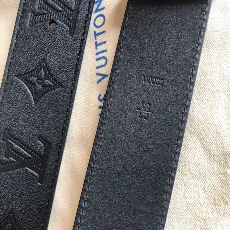 Louis Vuitton 40mm men s belt with embossed Monogram letters shiny buckle