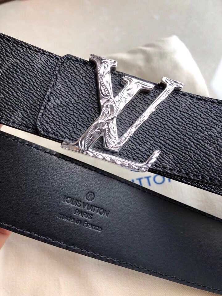 Louis Vuitton Vintage silver letter buckle Damier/Monogram men s 3.8cm belt