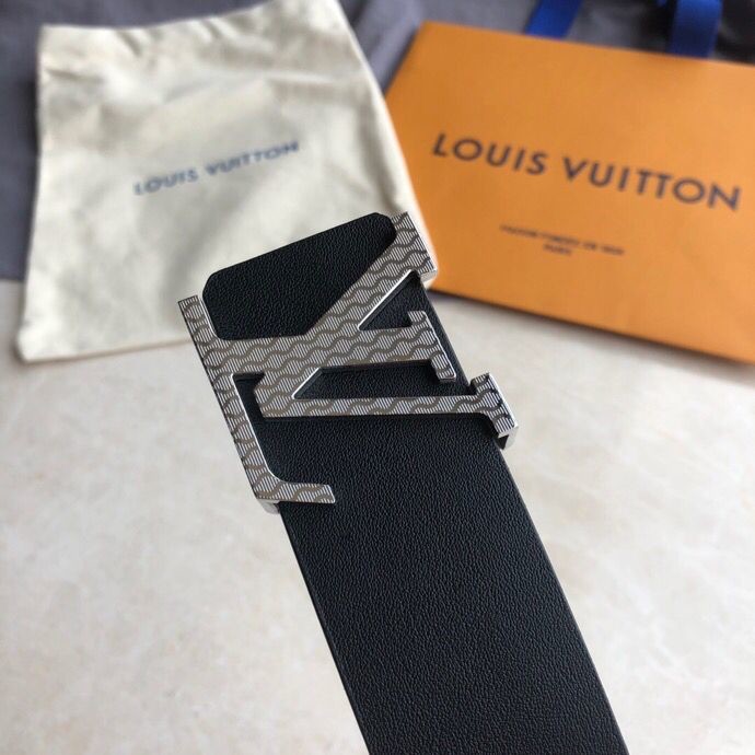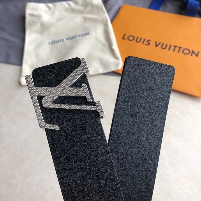 Louis Vuitton Stainless steel letter pattern hanging buckle 3.8cm cowhide Reversible belt