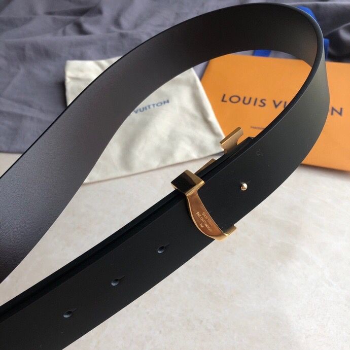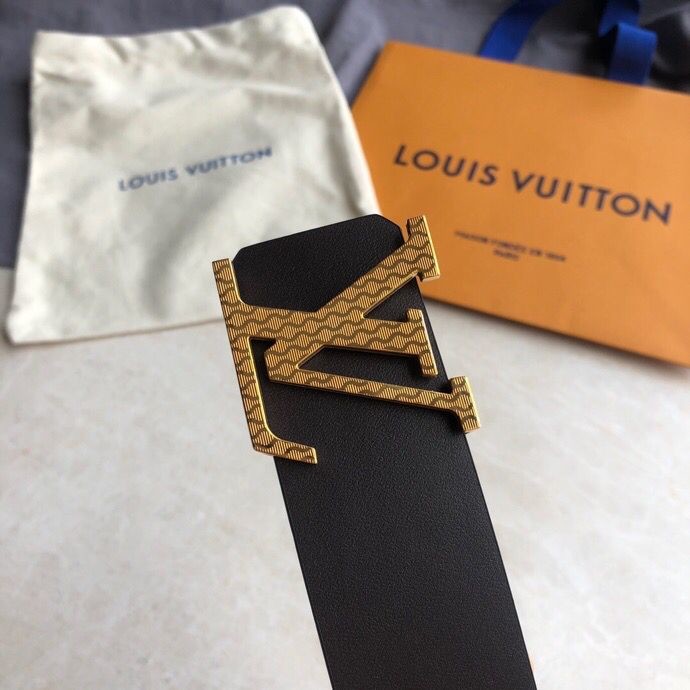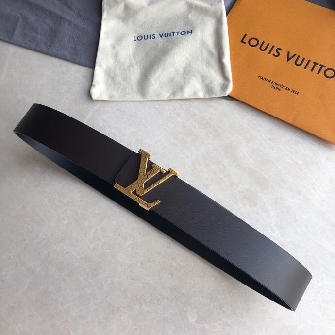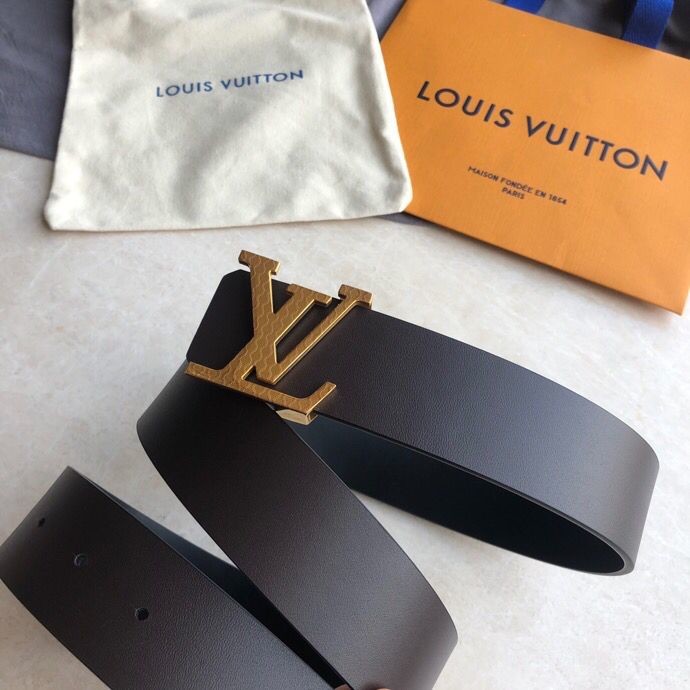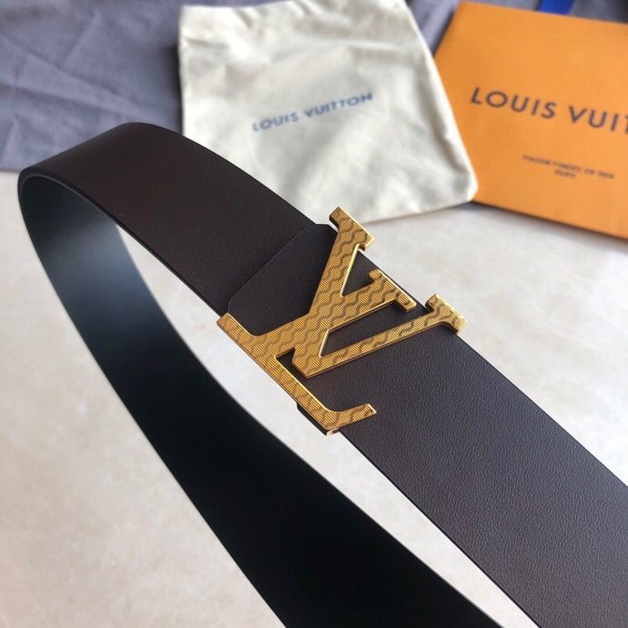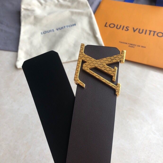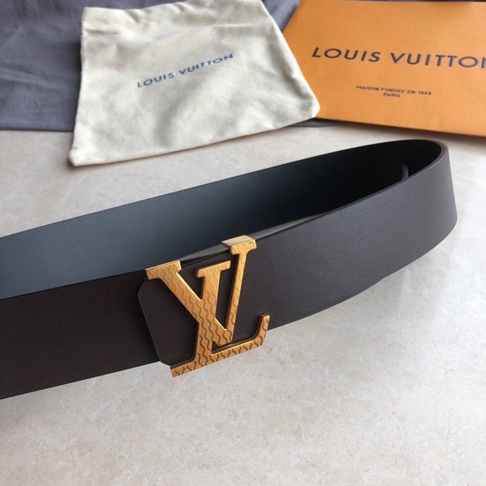 Louis Vuitton Stainless steel letter pattern hanging buckle 3.8cm cowhide Reversible belt