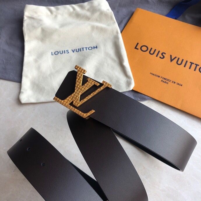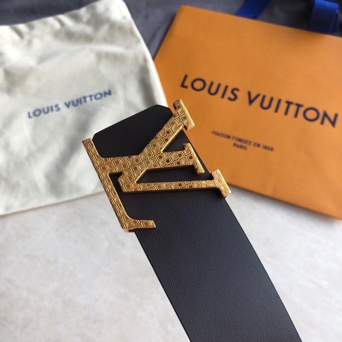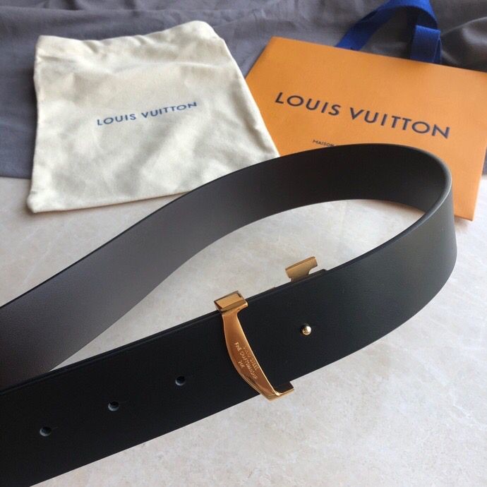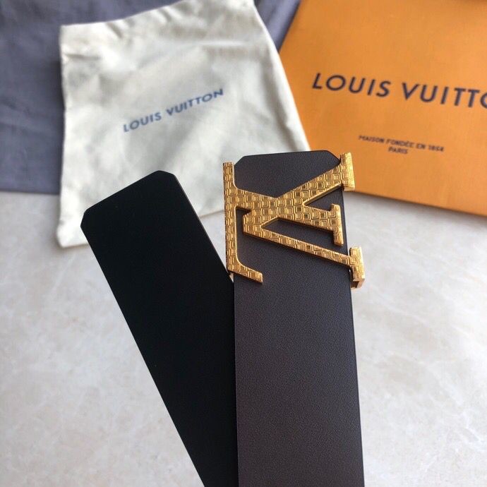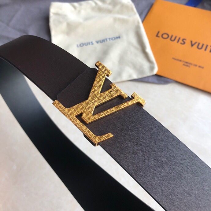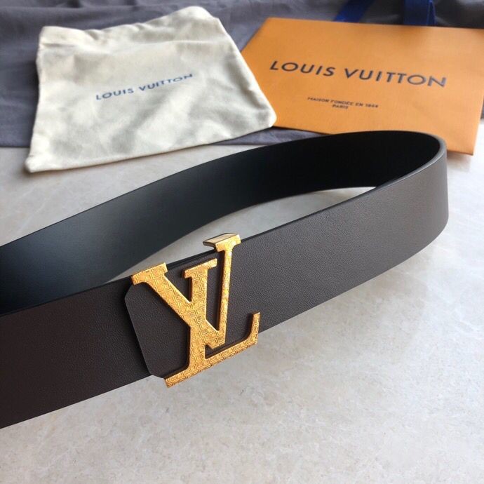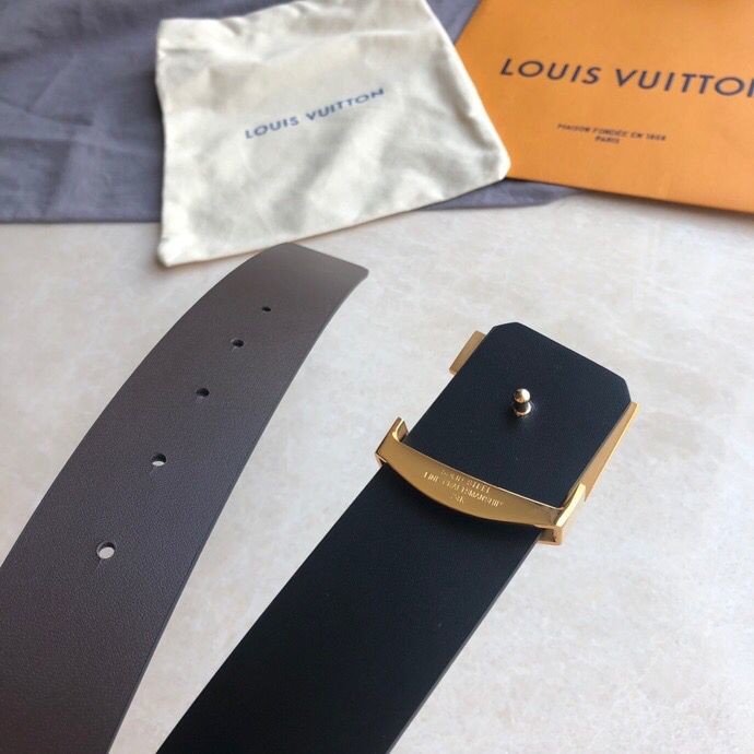 Louis Vuitton Stainless steel letter pattern hanging buckle 3.8cm cowhide Reversible belt