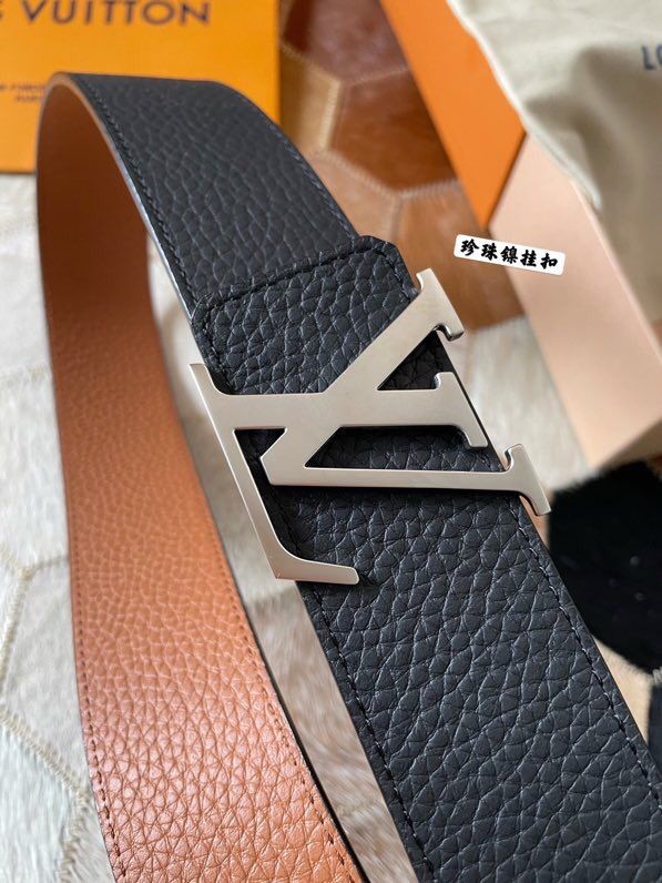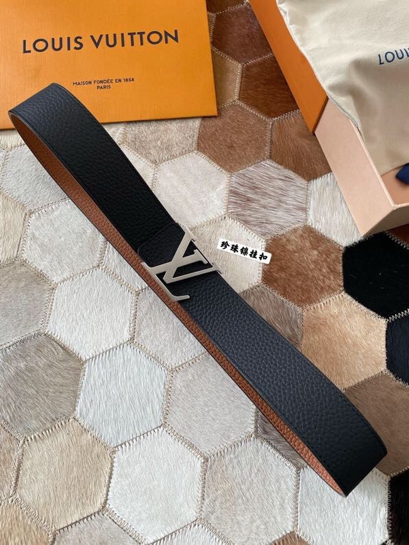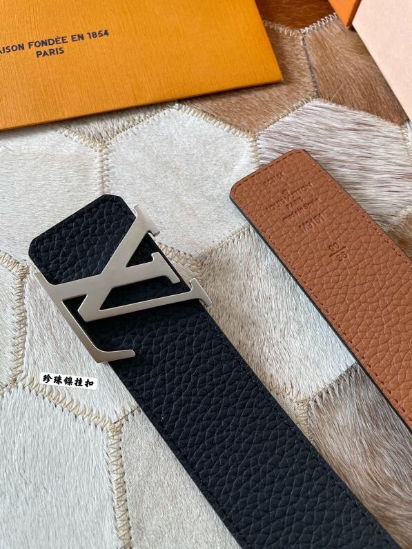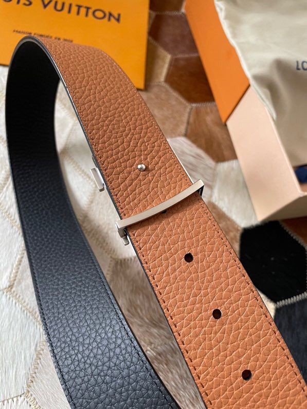 Louis Vuitton Reversible Black/Natural Belt with Pearl Nickel Buckle