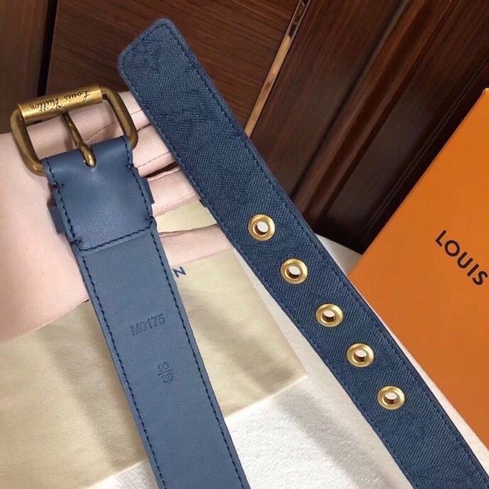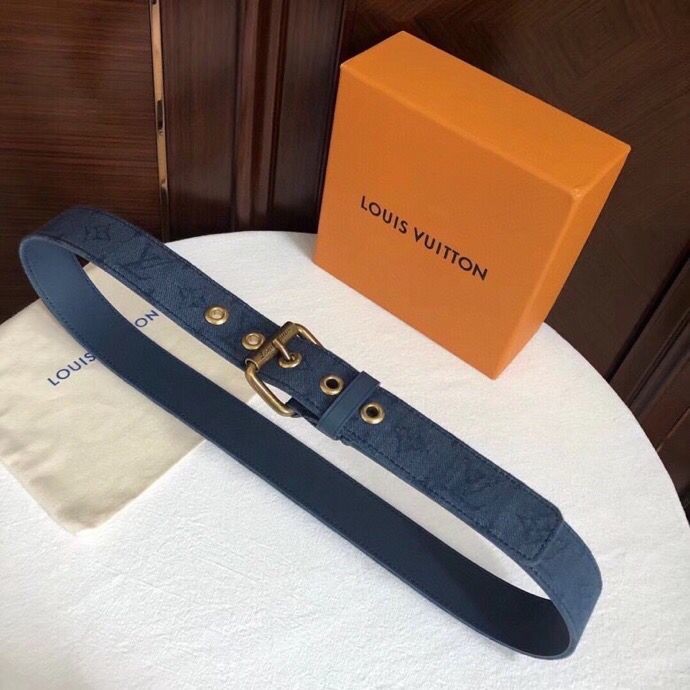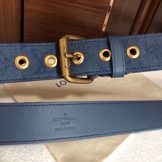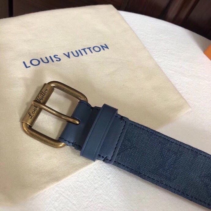 Louis Vuitton Monogran Printed Washed Denim Calfskin Signature Belt
