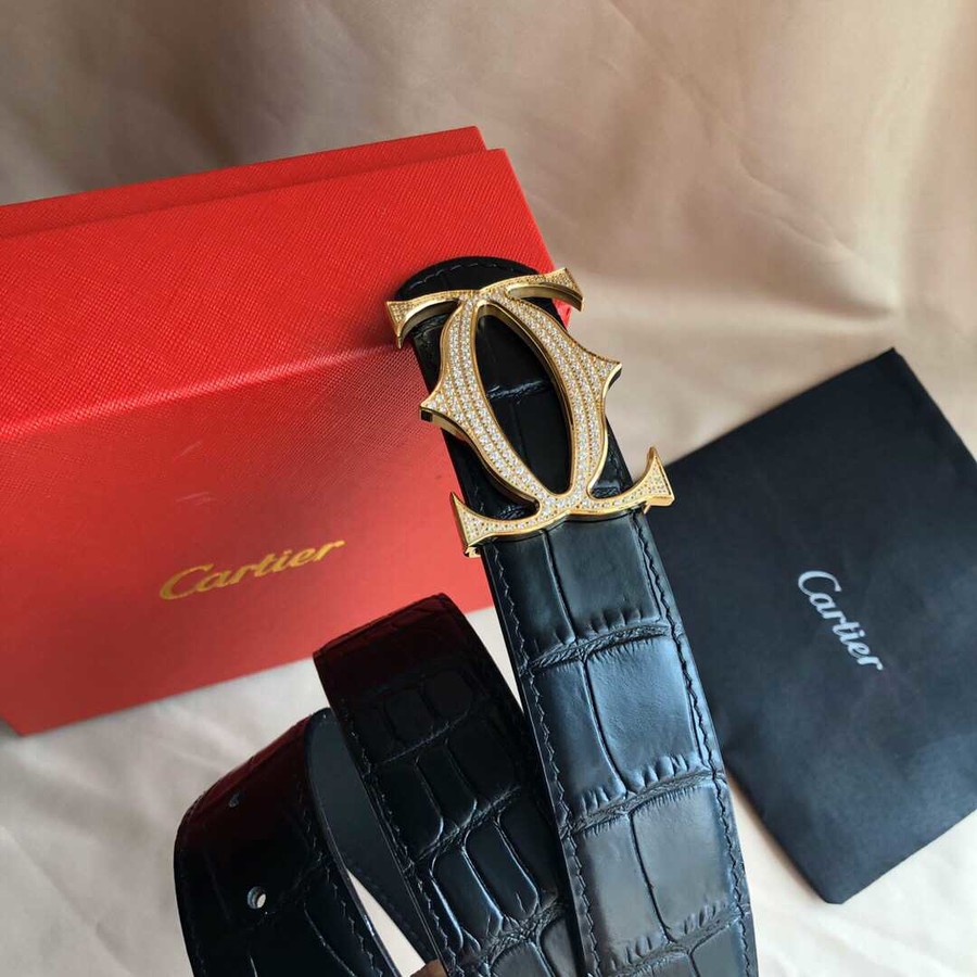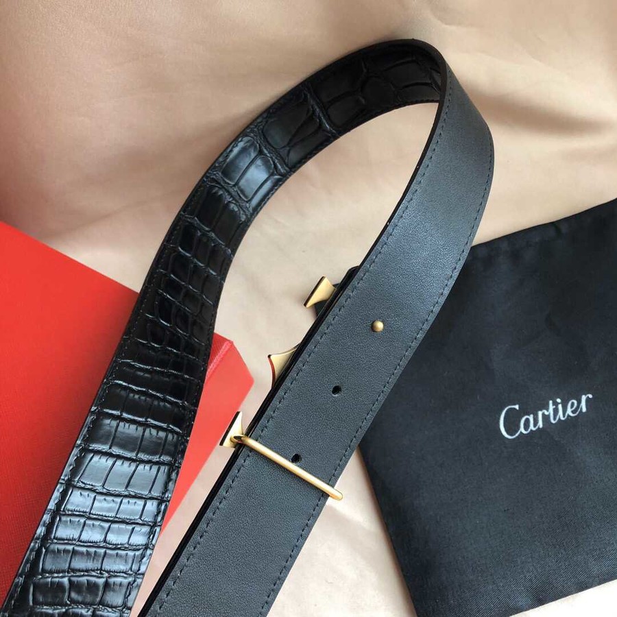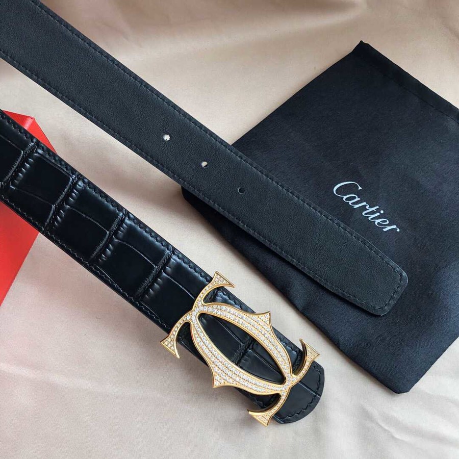 Cartier Stainless steel CC buckle leather crocodile pattern belt