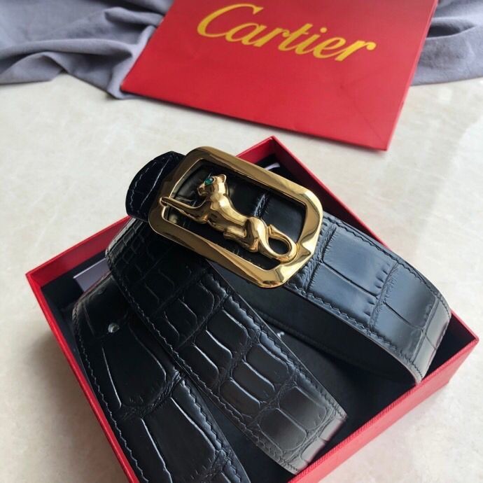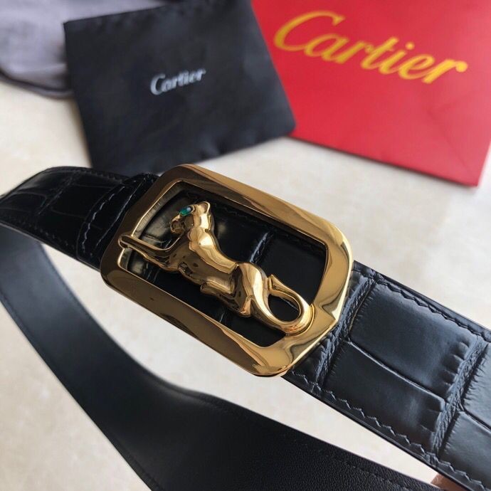 Cartier Louis-Franois steel leopard head metal buckle cowhide crocodile pattern belt