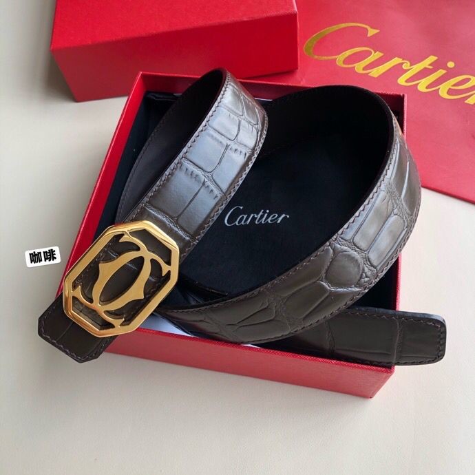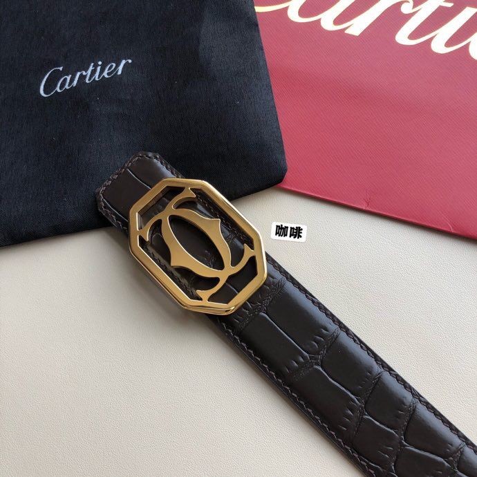 Cartier Stainless steel metal buckle leather belt 3.5cm