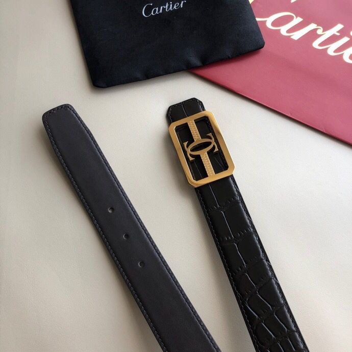 Cartier Stainless steel metal buckle leather belt 3.5cm