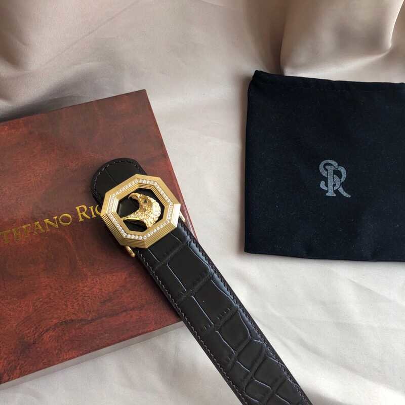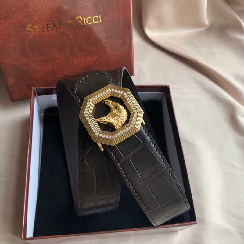 Stefano Ricci Stainless steel eagle head buckle 3.8cm cowhide belt