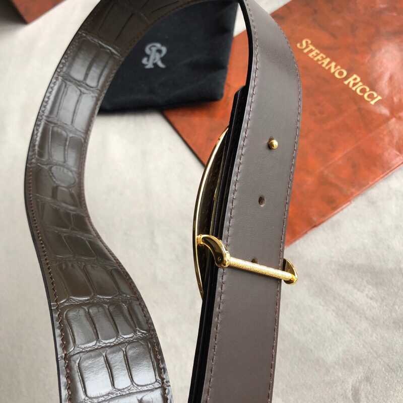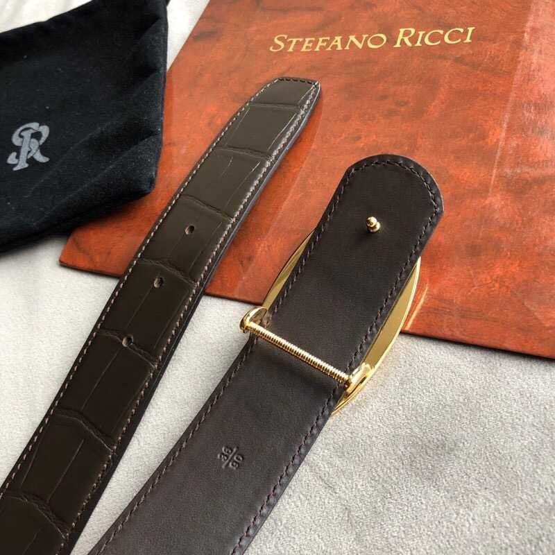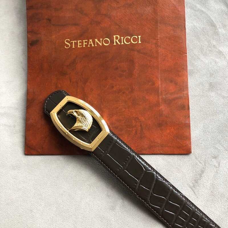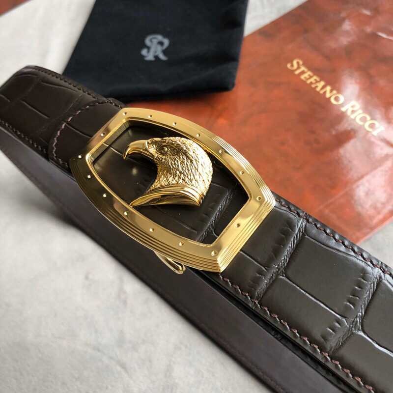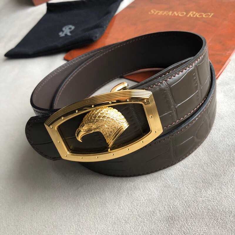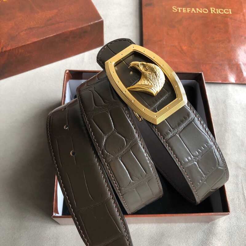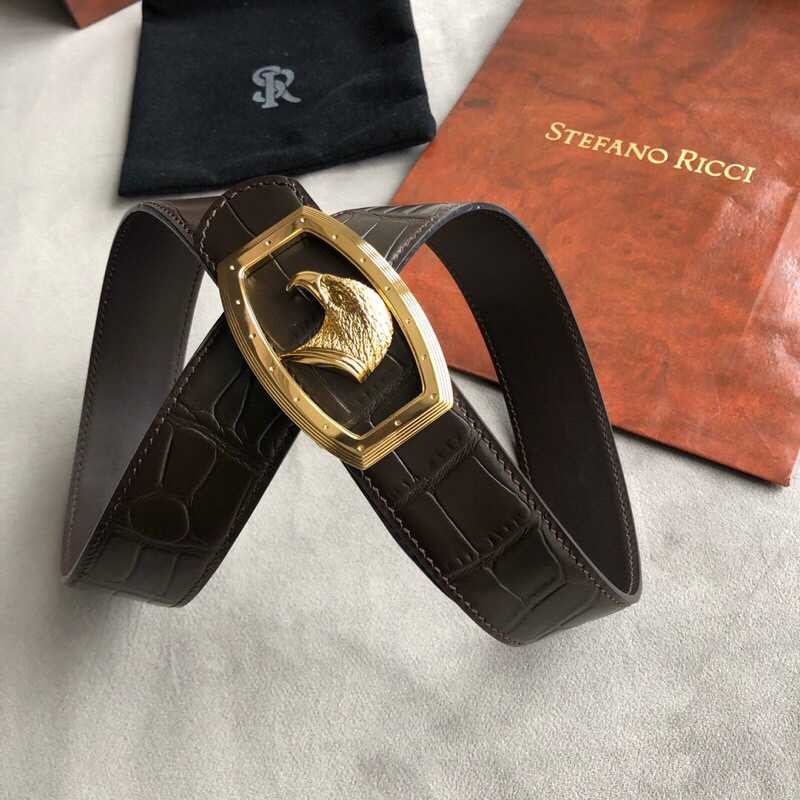 Stefano Ricci 3.8cm cowhide belt with stainless steel eagle head profile buckle