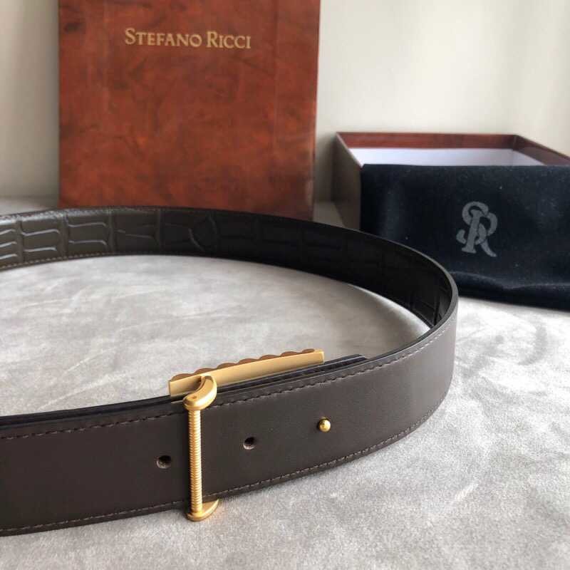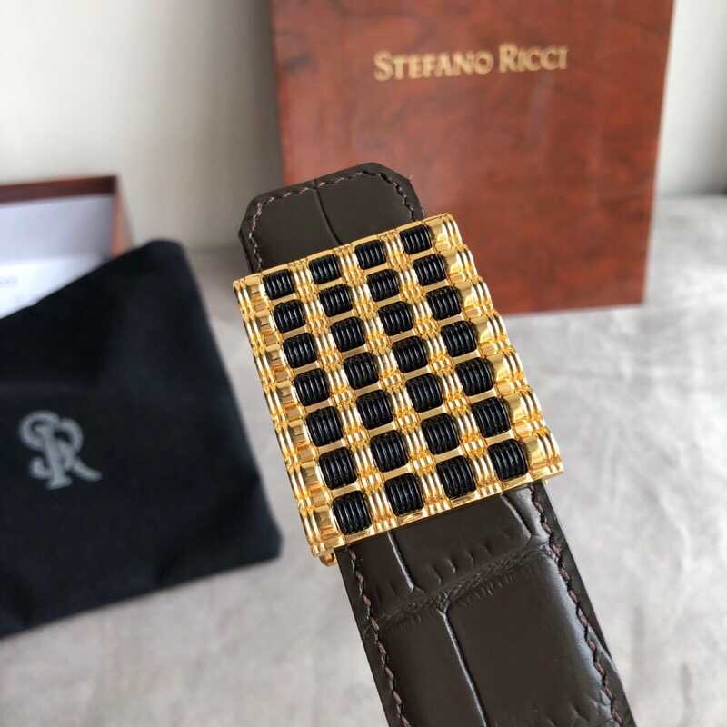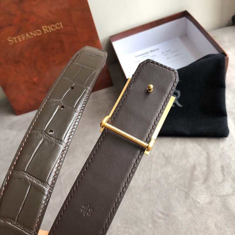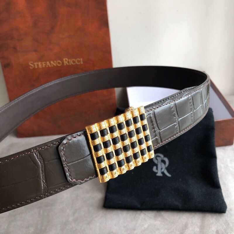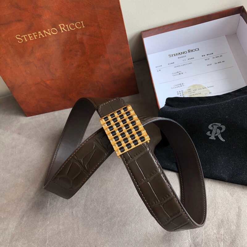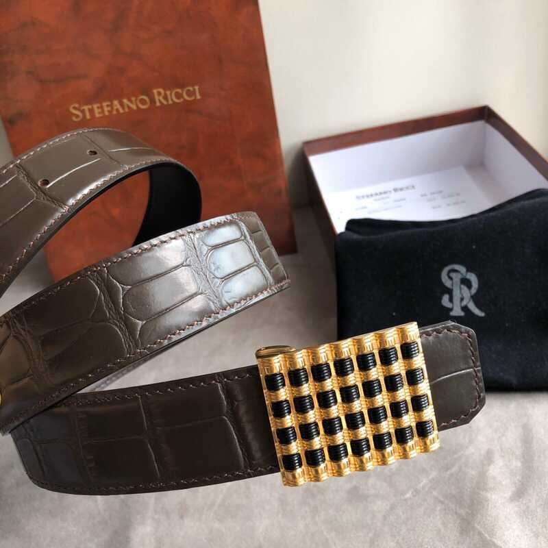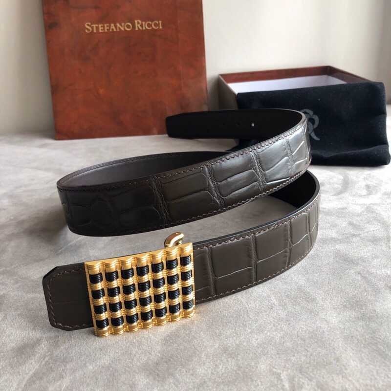Stefano Ricci 3.5cm leather embossed crocodile pattern belt with stainless steel buckle